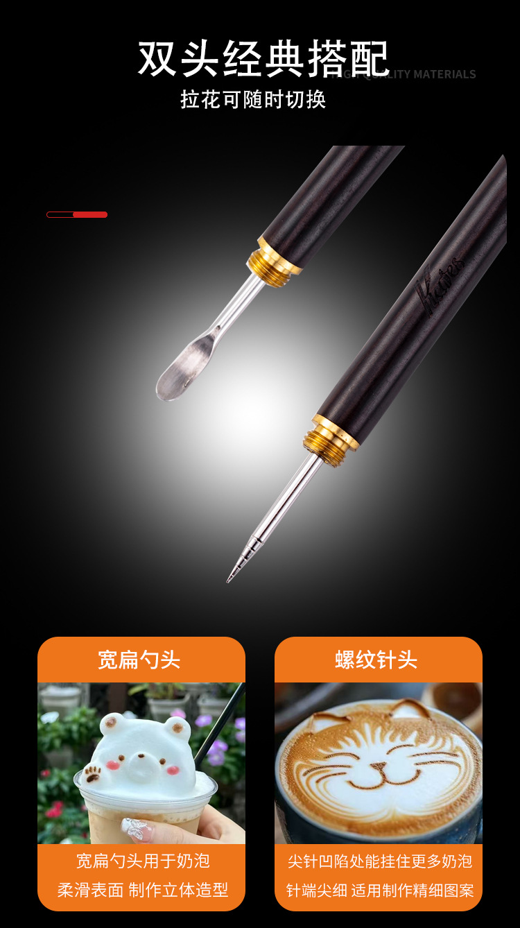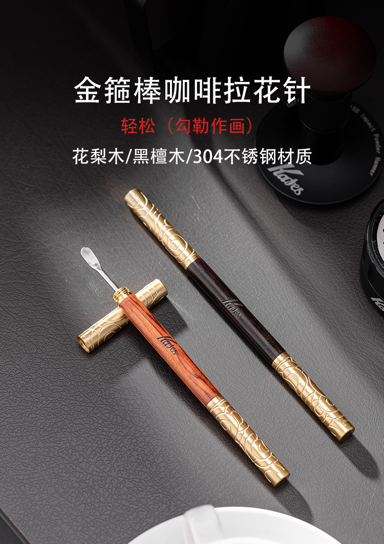 咖啡拉花针花梨木柄雕花针花式拉花针雕花棒拉花器具创意金箍棒