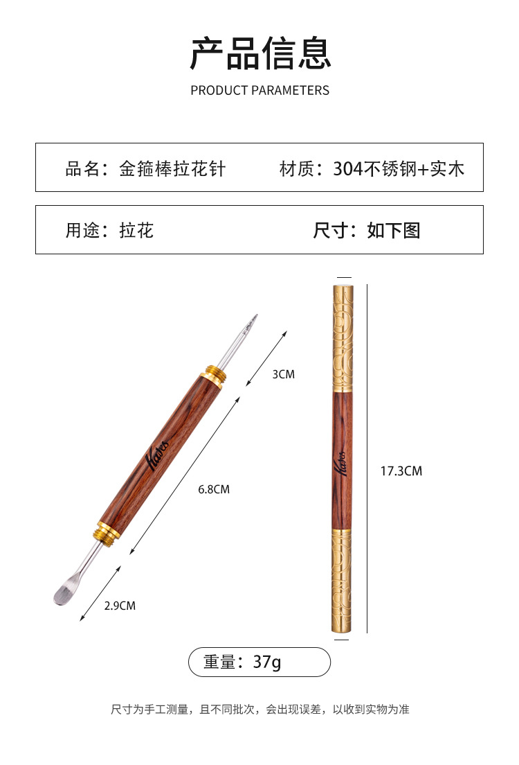 黒神話金フープ棒引き針304ステンレス引き針花梨木黒檀木彫刻針コーヒー器具