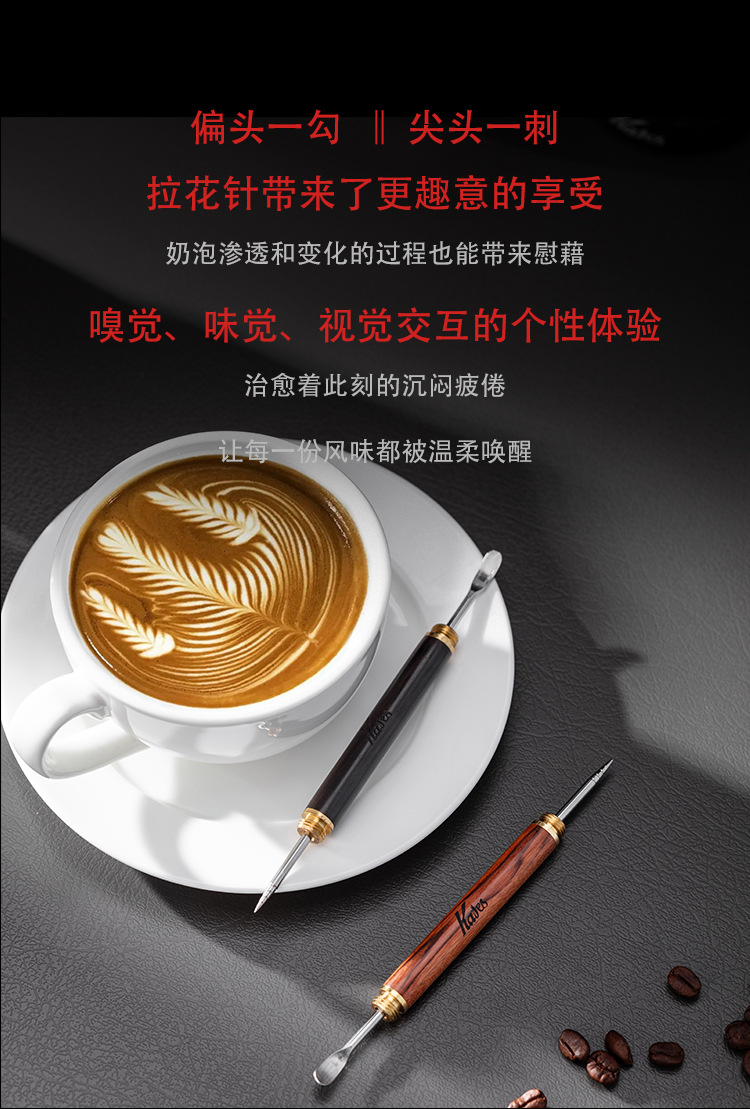 咖啡拉花针 花梨木柄雕花针花式拉花针 雕花棒拉花器具咖啡器具
