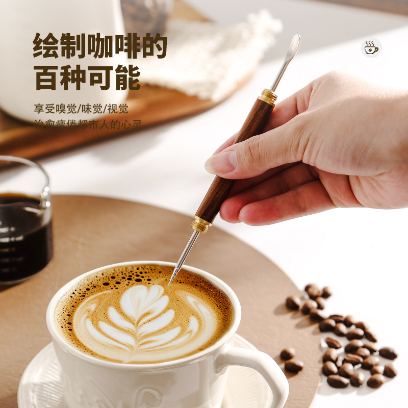コーヒーラテアート針 ステンレス彫刻針 無垢材ローズウッド ラテアート針 フラワーアートペン