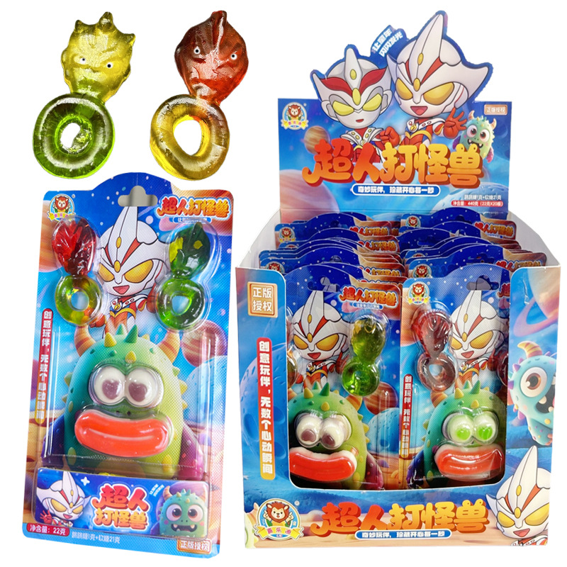 儿童创意卡通超人打怪兽英雄戒指造型果味软糖搞怪零食橡皮糖批发