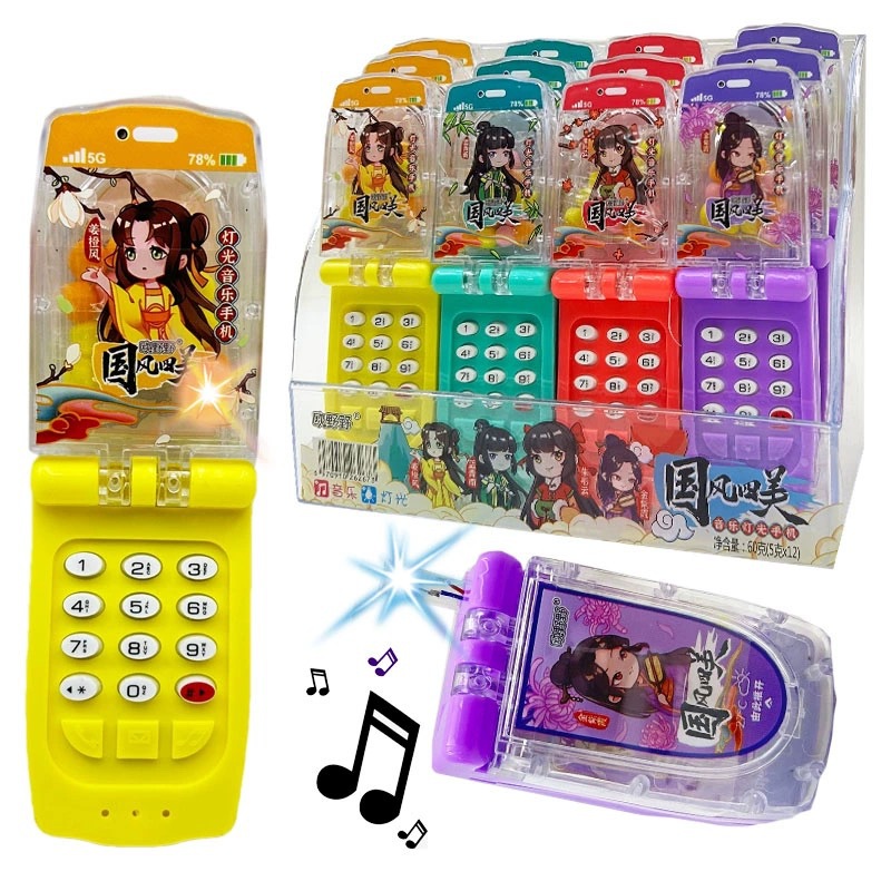 子供の創造的なキャンディーのおもちゃの漫画のかわいい国風の王女は蓋をひっくり返して光る音楽の携帯電話の女の子のプレゼントを輝かせます。