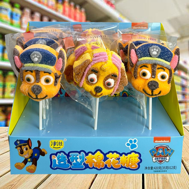 本物のパウ・パトロール漫画かわいい動物子犬の形をしたマシュマロロリポップ子供用スナック卸売