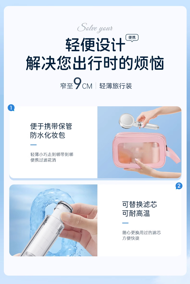 过滤花洒喷头热水器除氯净水器旅行便携增压淋浴头出水免打孔柔和