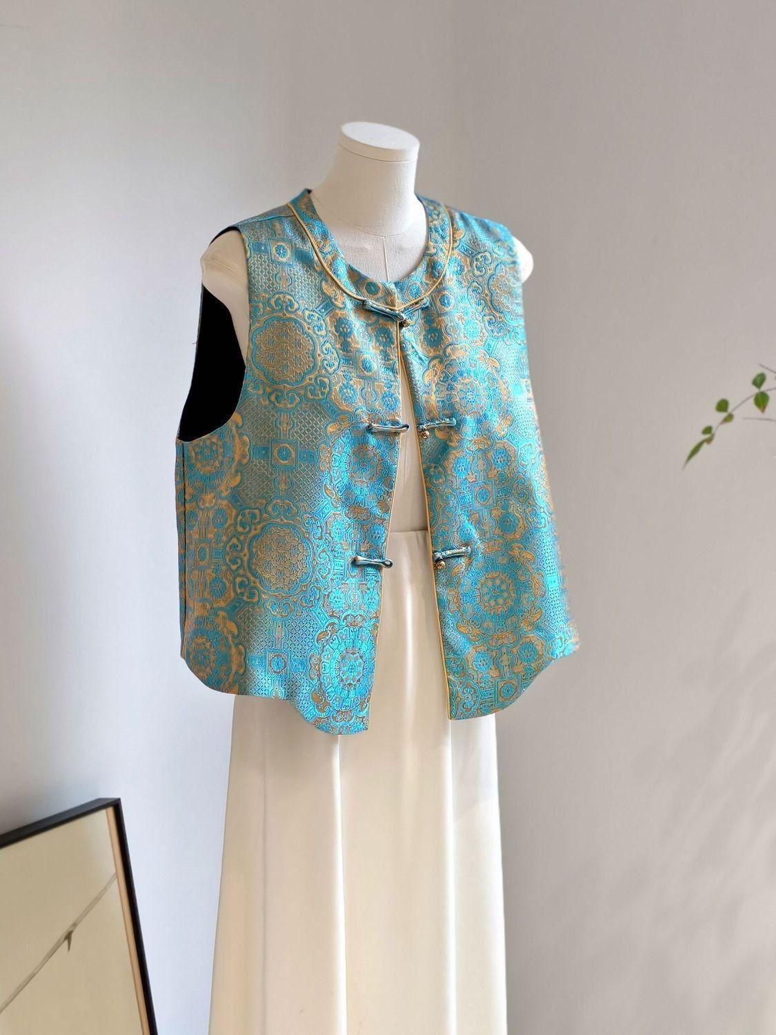 春の国風馬甲織錦宝相花新中国式馬甲女中国風高級馬甲女2025年春