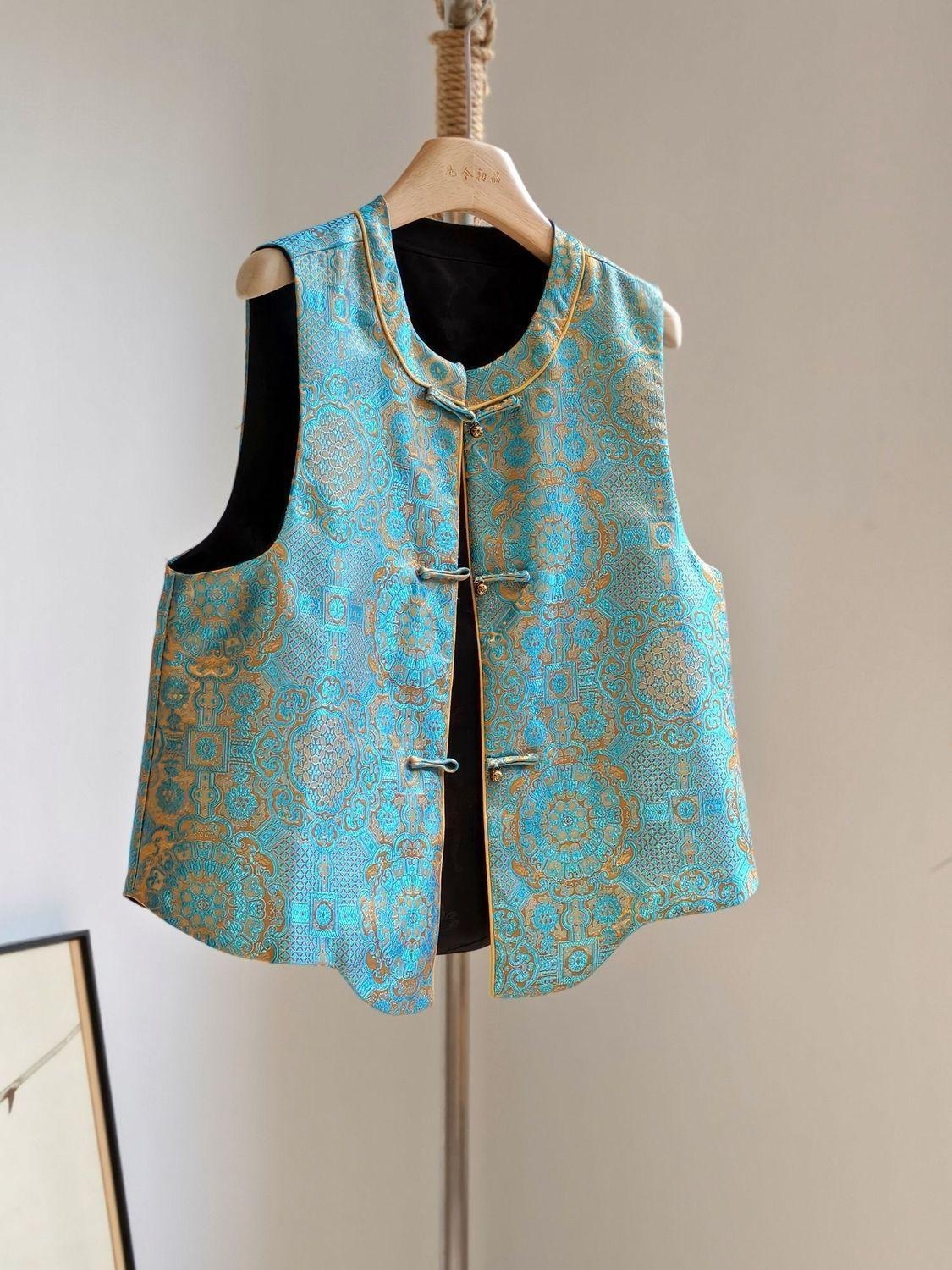 2025年早春国風馬甲春秋金復古盤留め馬甲高級片面ジャカード新上着