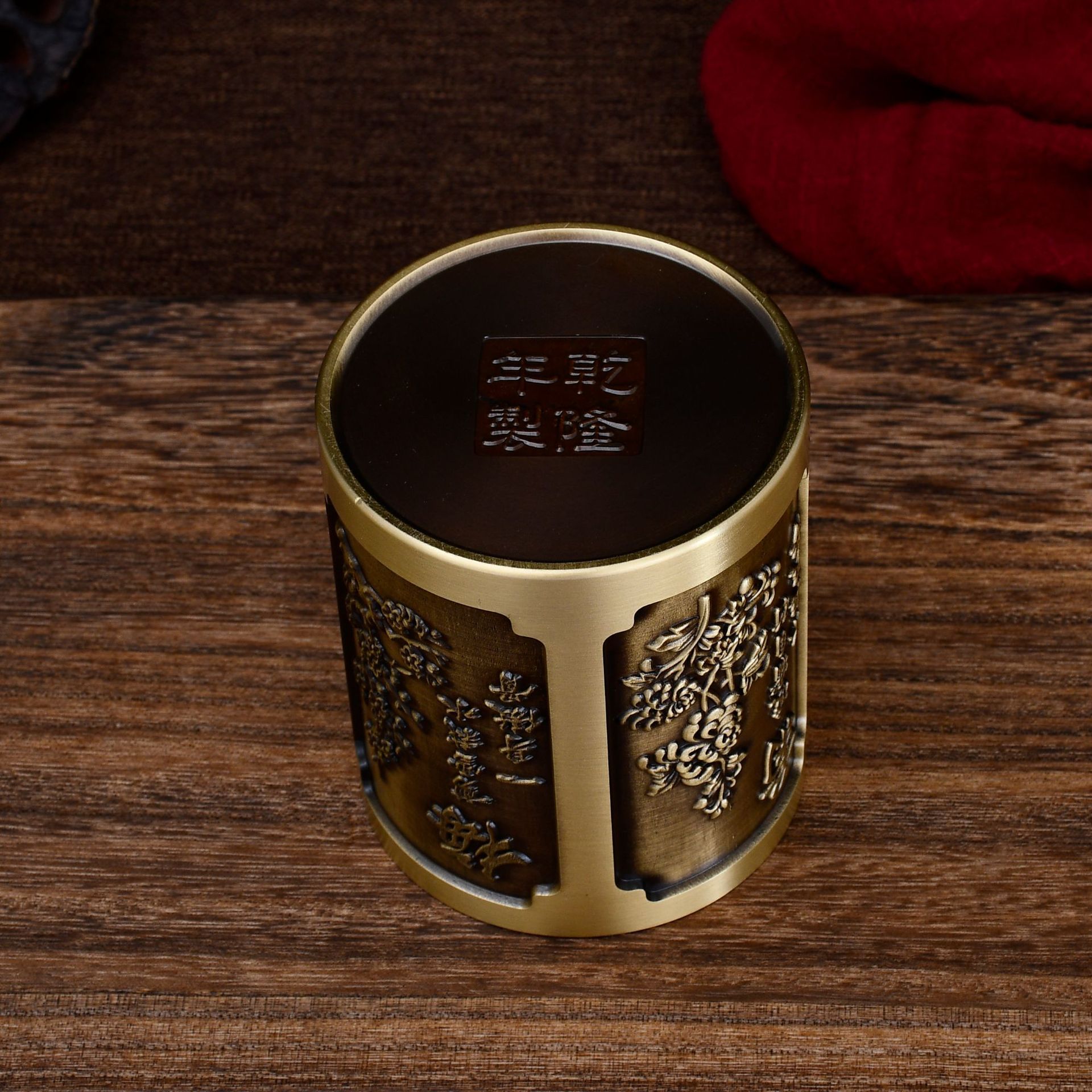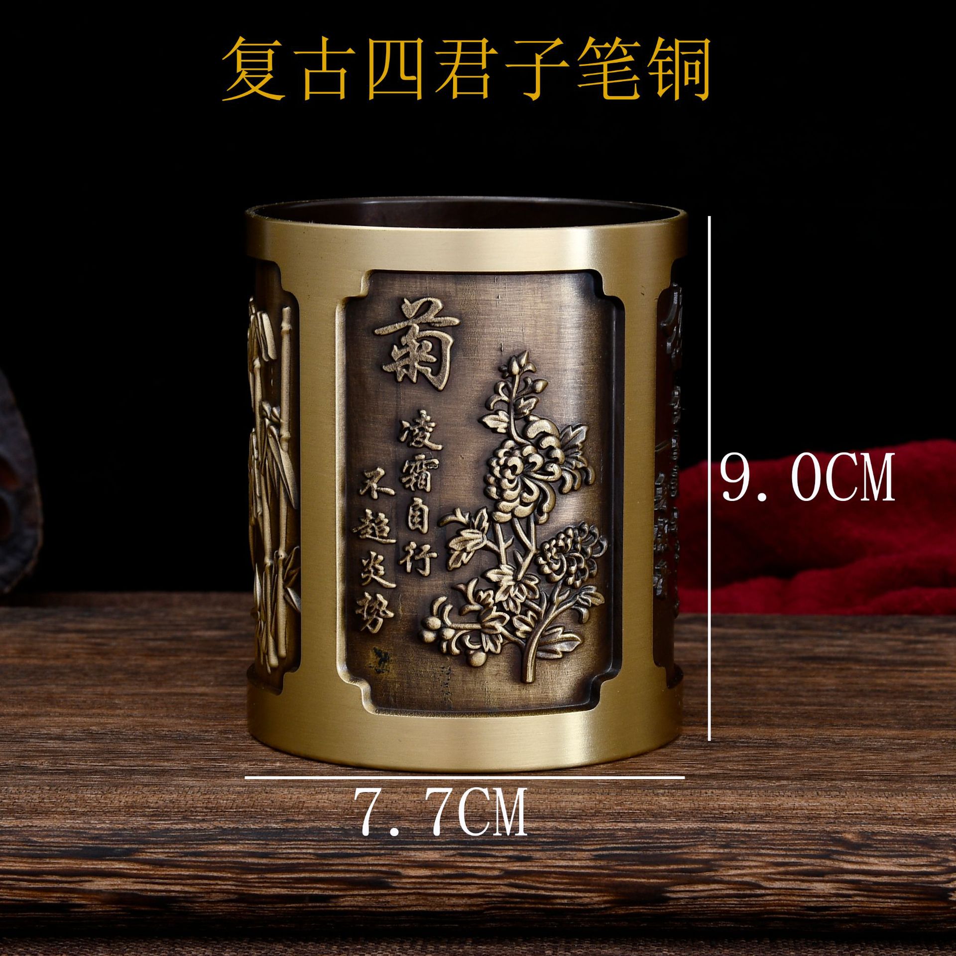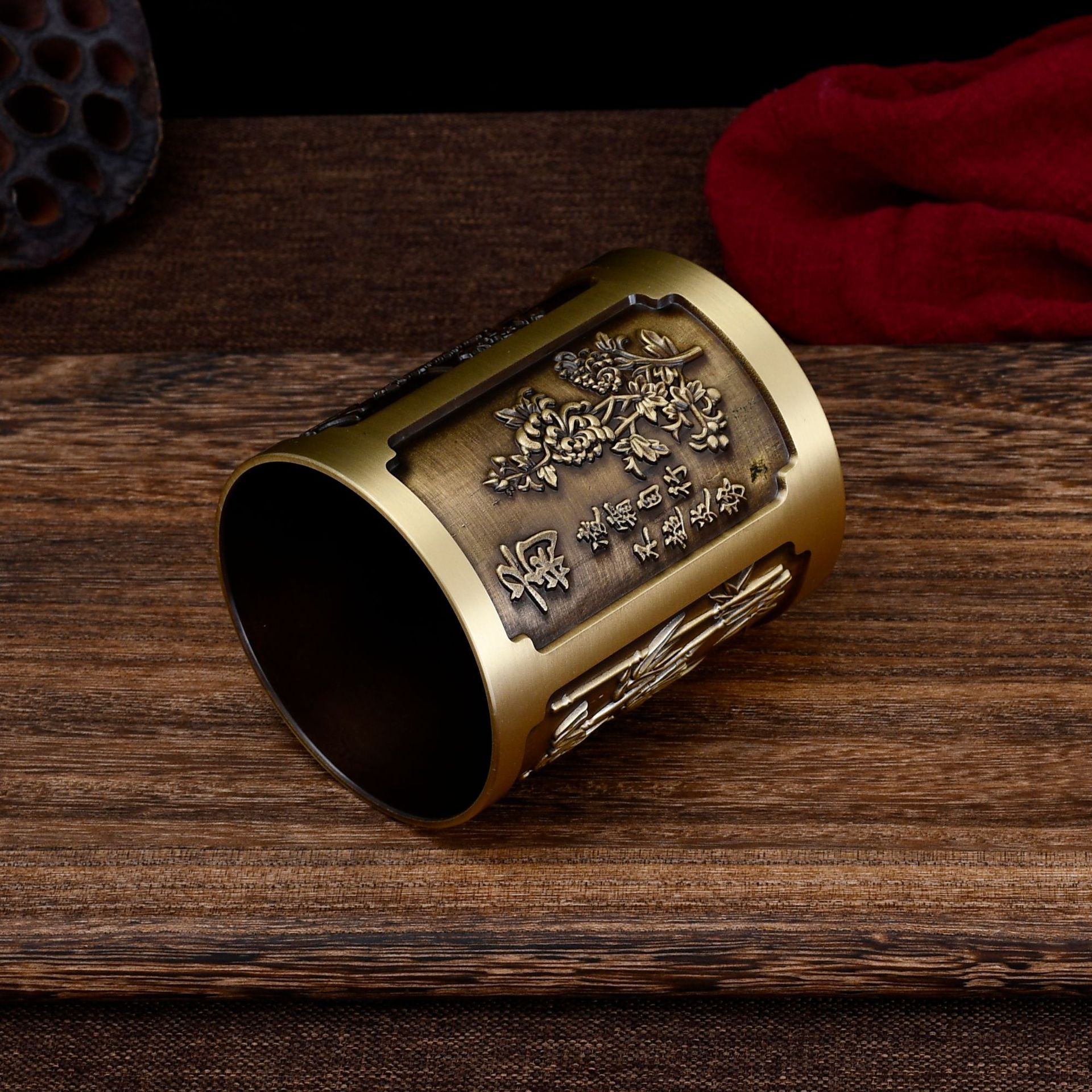 黄铜工艺品铜笔筒摆件黄铜雕刻中式古风办公商务金属礼物