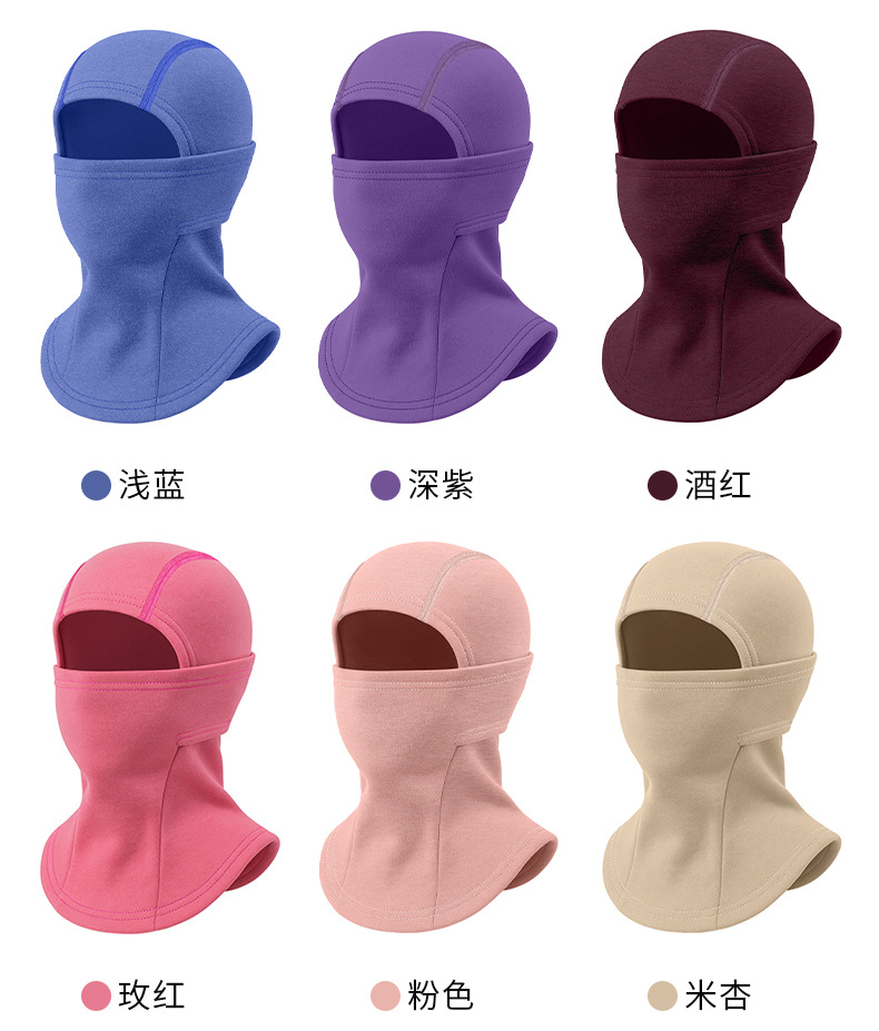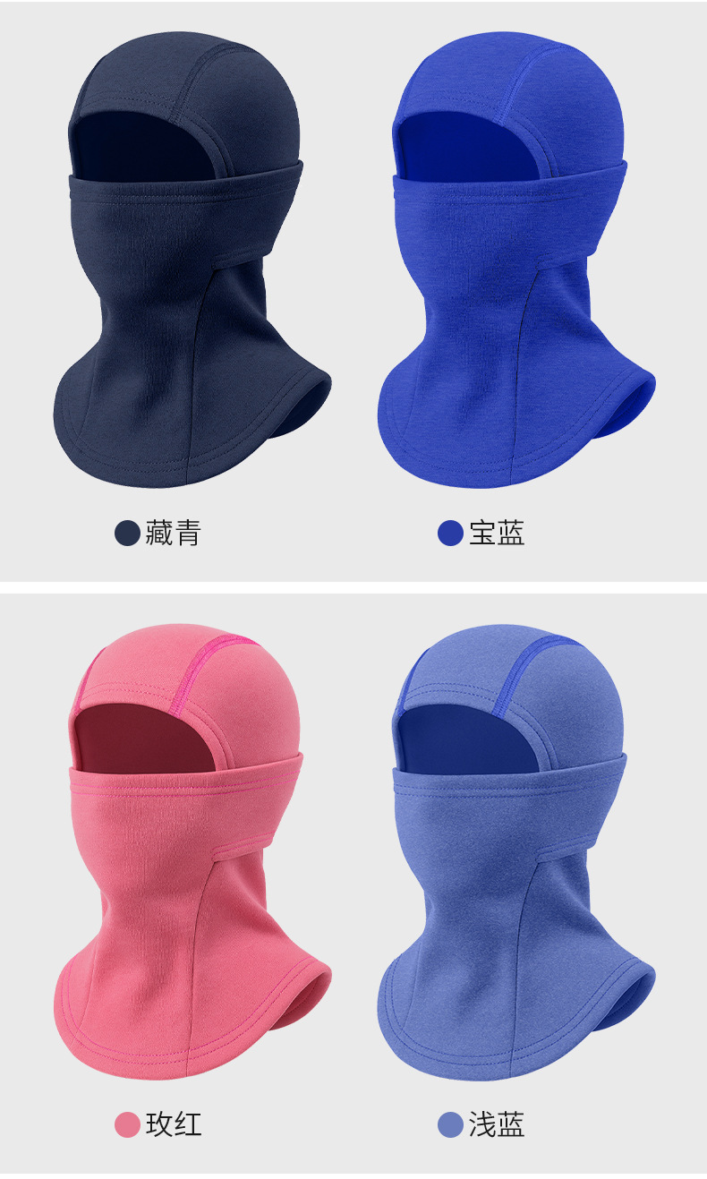 冬季保暖滑雪面罩多功能儿童骑车防风头套纯色加绒加厚防寒套头帽