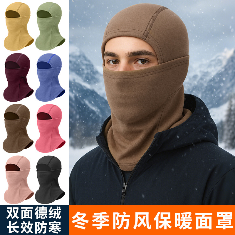 冬季电动车骑行保暖面罩多功能滑雪护脸头套加厚德绒防寒包头帽子