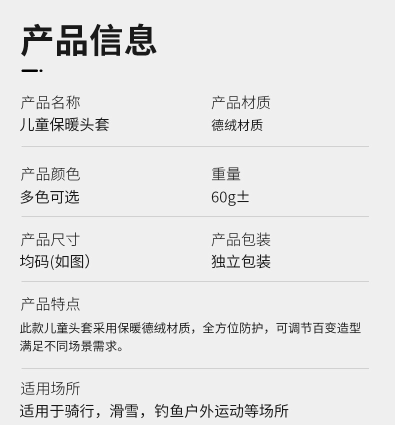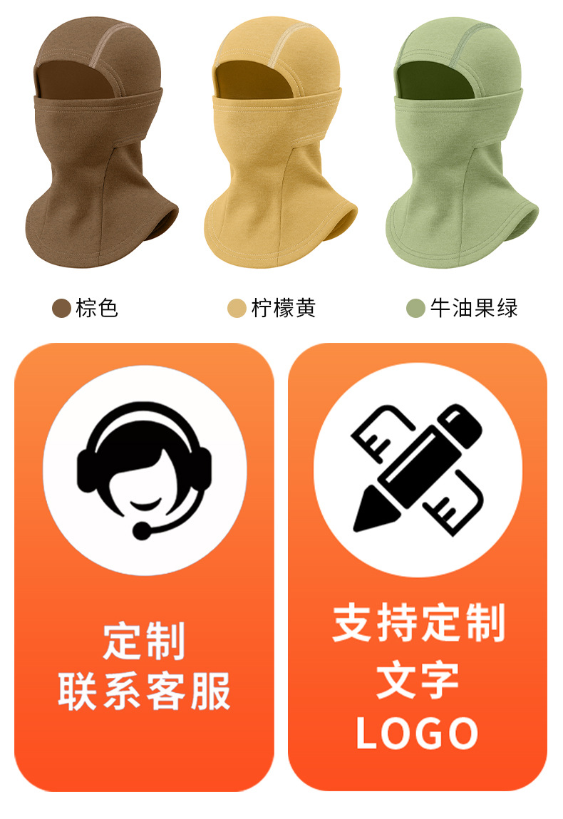 秋冬季骑行面罩围脖一体加厚德绒防寒滑雪头套纯色儿童保暖套头帽