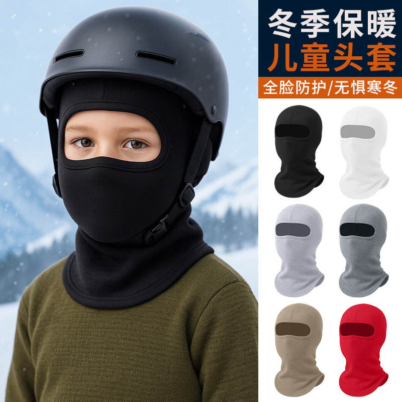 亚马逊冬季加绒防风面罩摩托车头套不移位儿童护脸德绒加厚套头帽