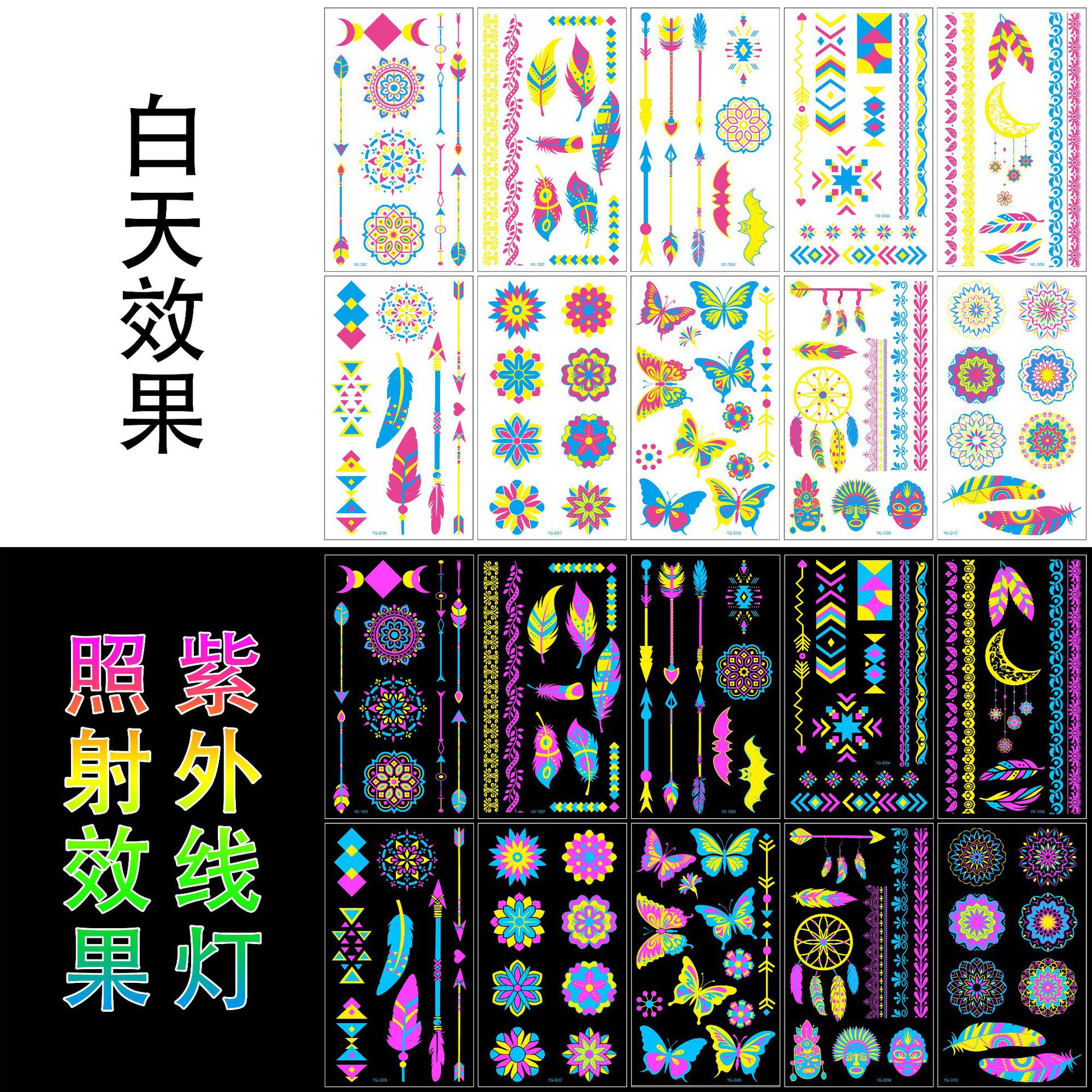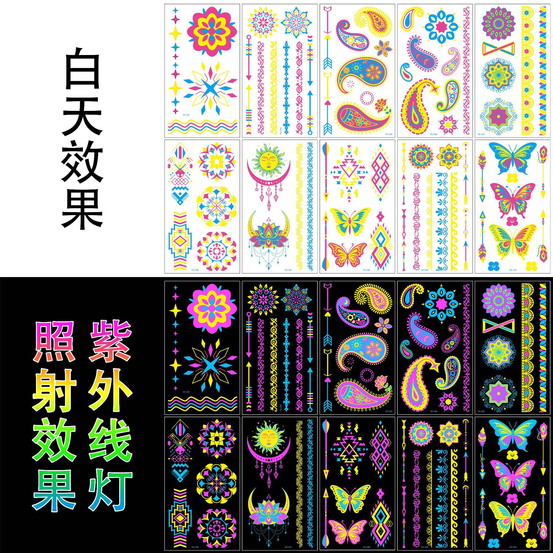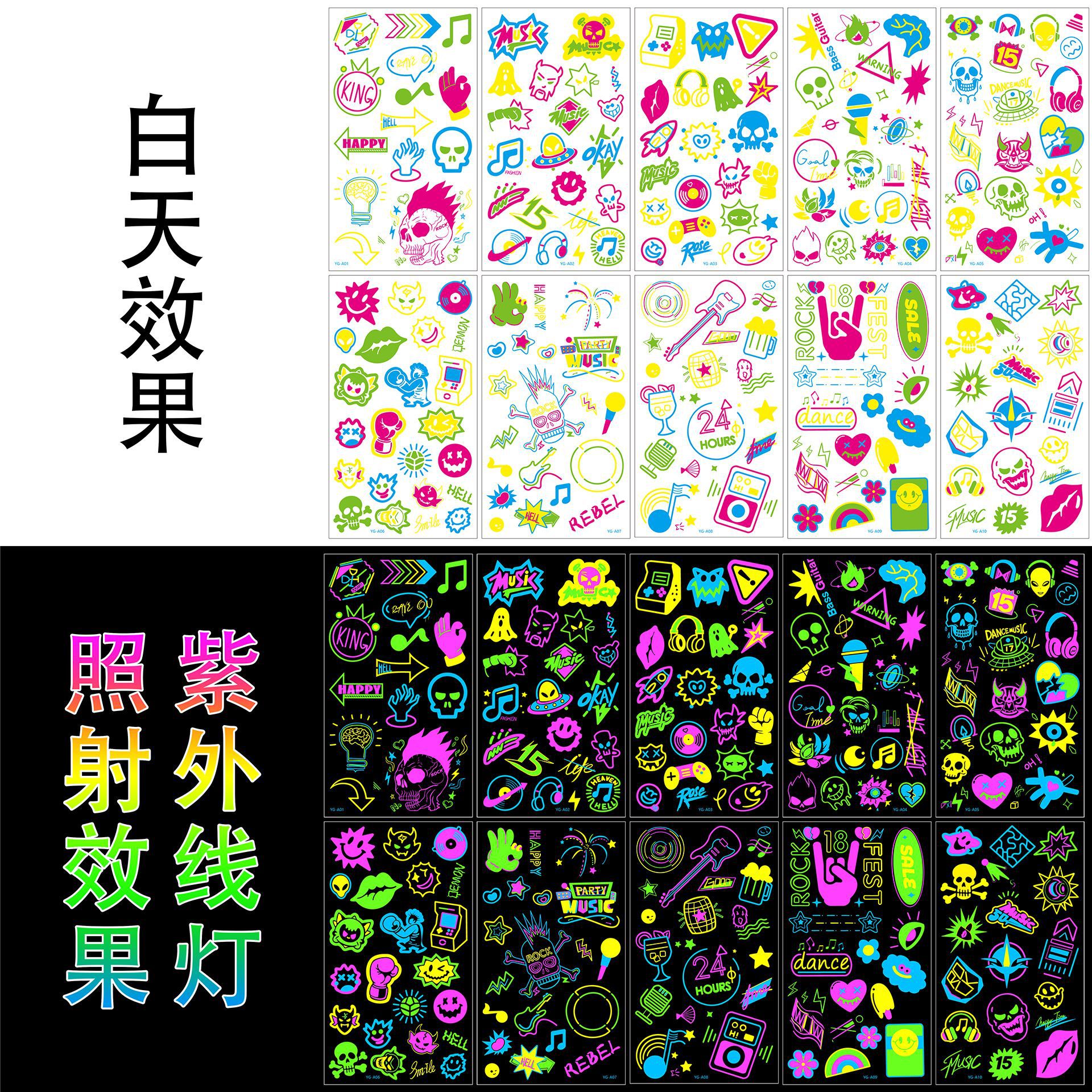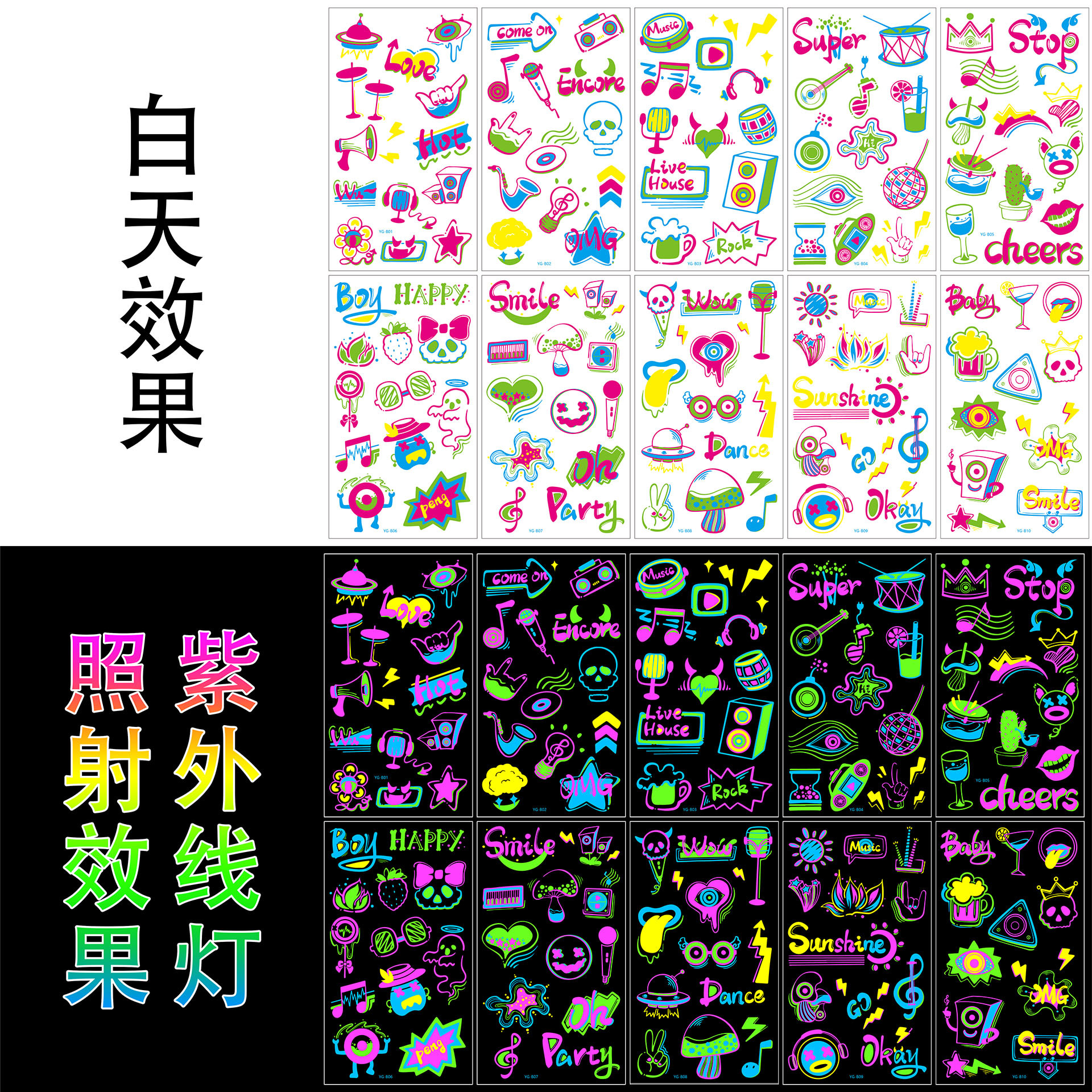 跨境新款创意音乐节荧光纹身贴夜店酒吧演唱会发光电音节纹身贴纸