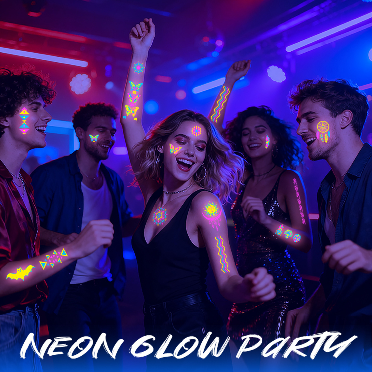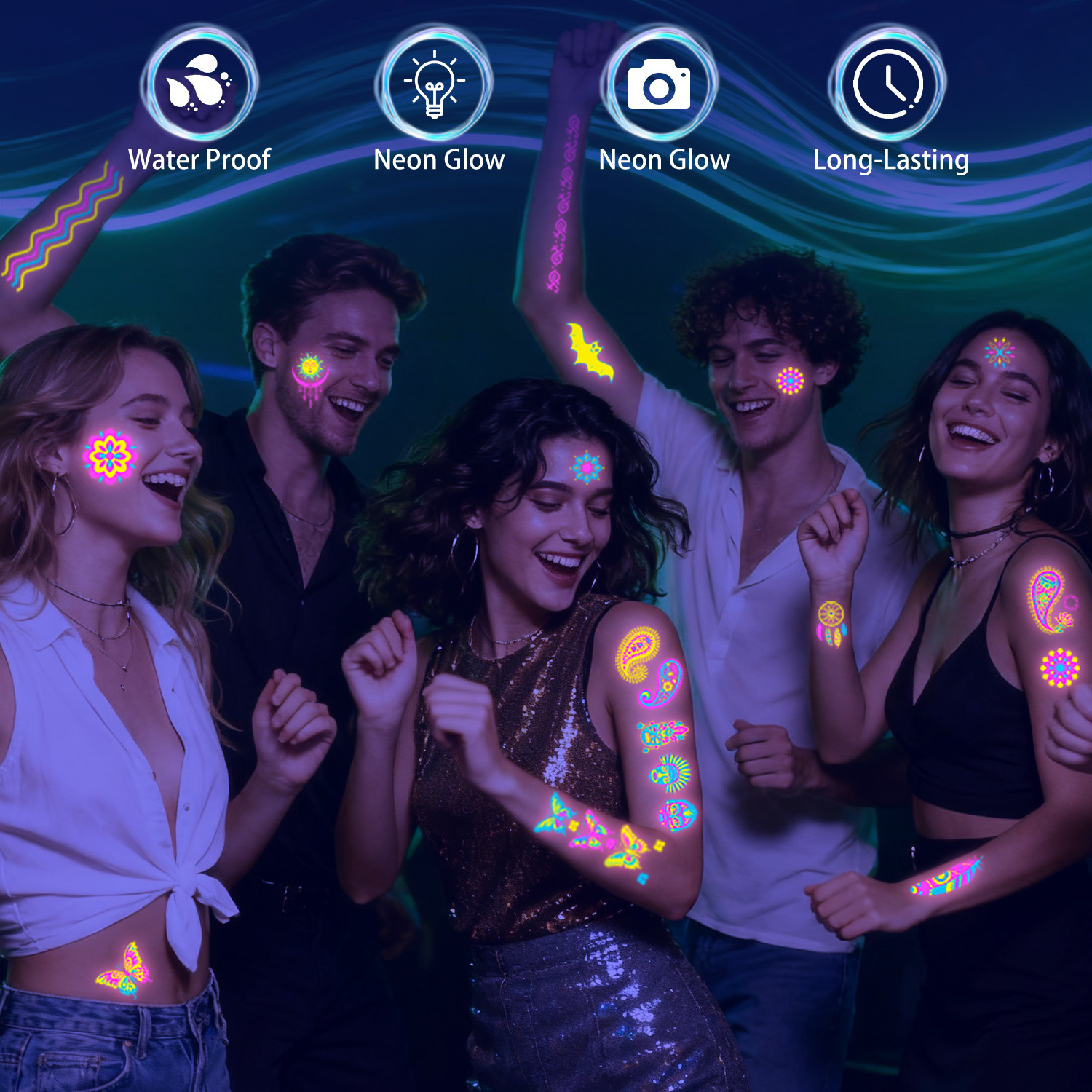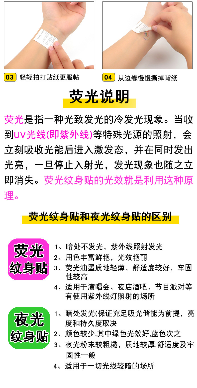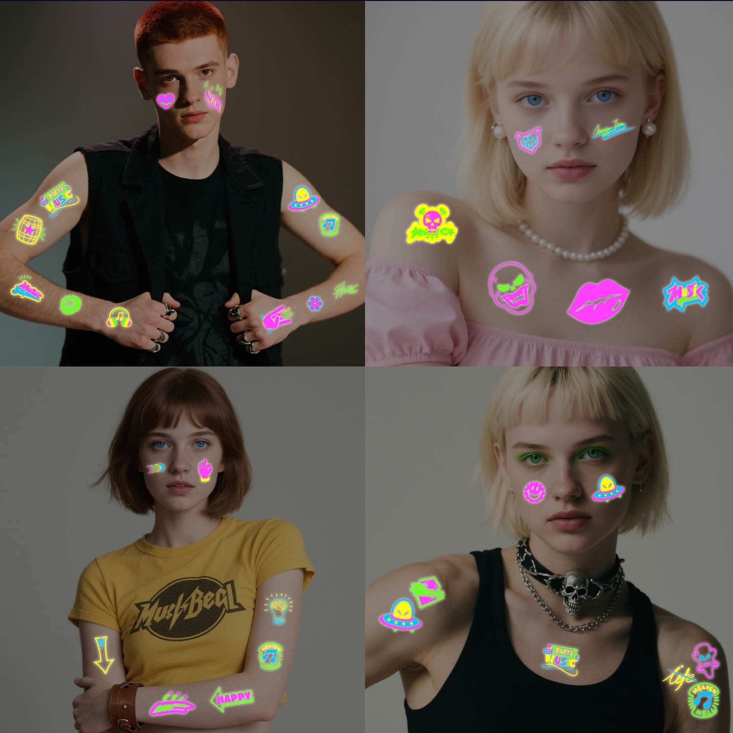 跨境新款创意音乐节荧光纹身贴夜店酒吧演唱会发光电音节纹身贴纸