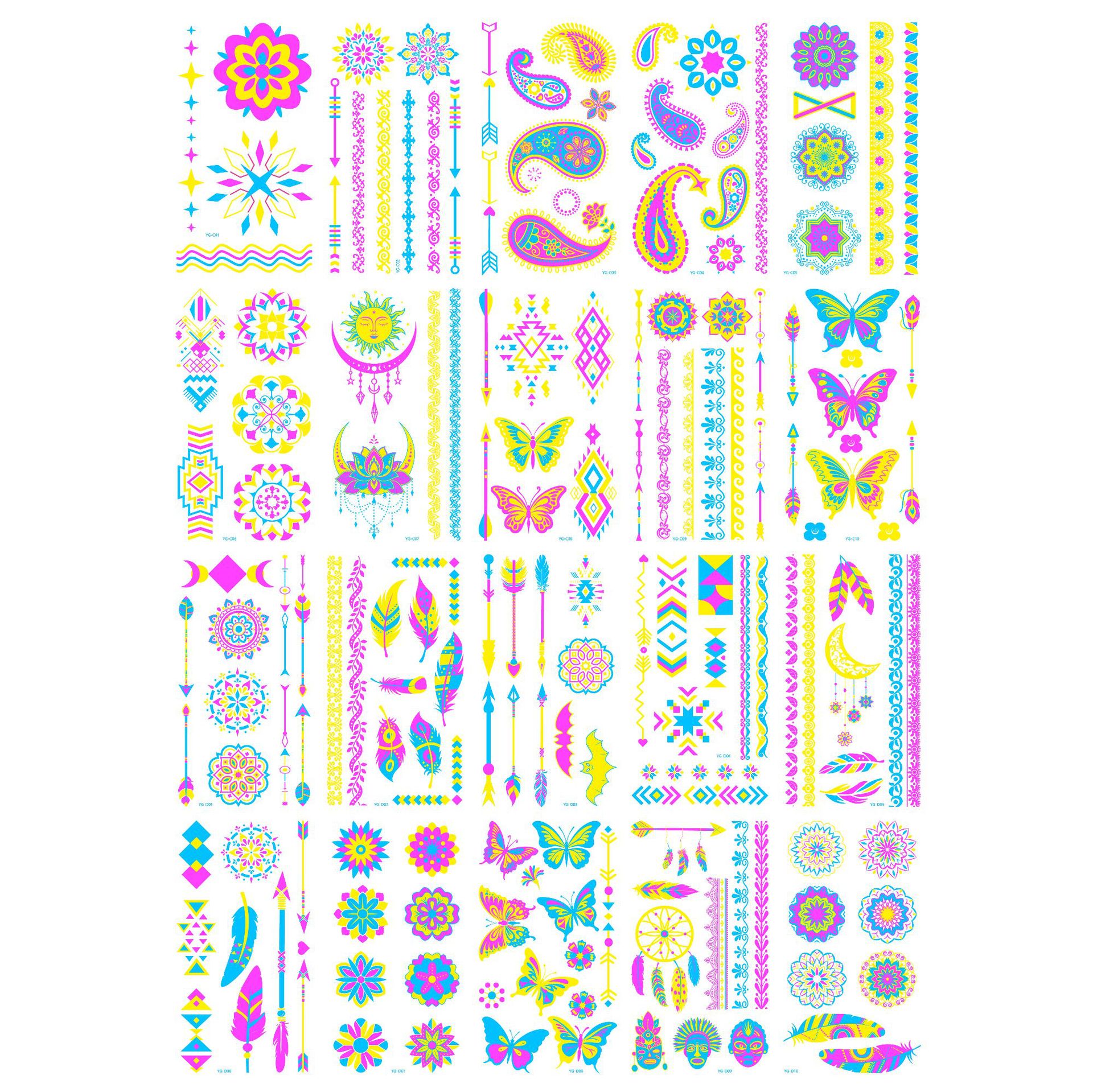 跨境新款蝴蝶音乐节荧光纹身贴夜店演唱会荧光贴纸电音节纹身贴纸