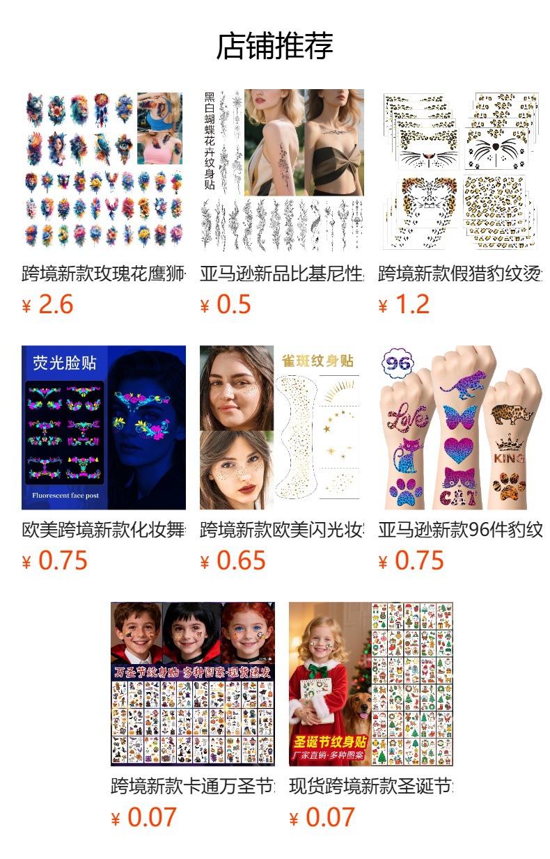 跨境新款可爱圣诞节纹身贴妆容脸贴可爱卡通儿童圣诞派对雀斑脸部