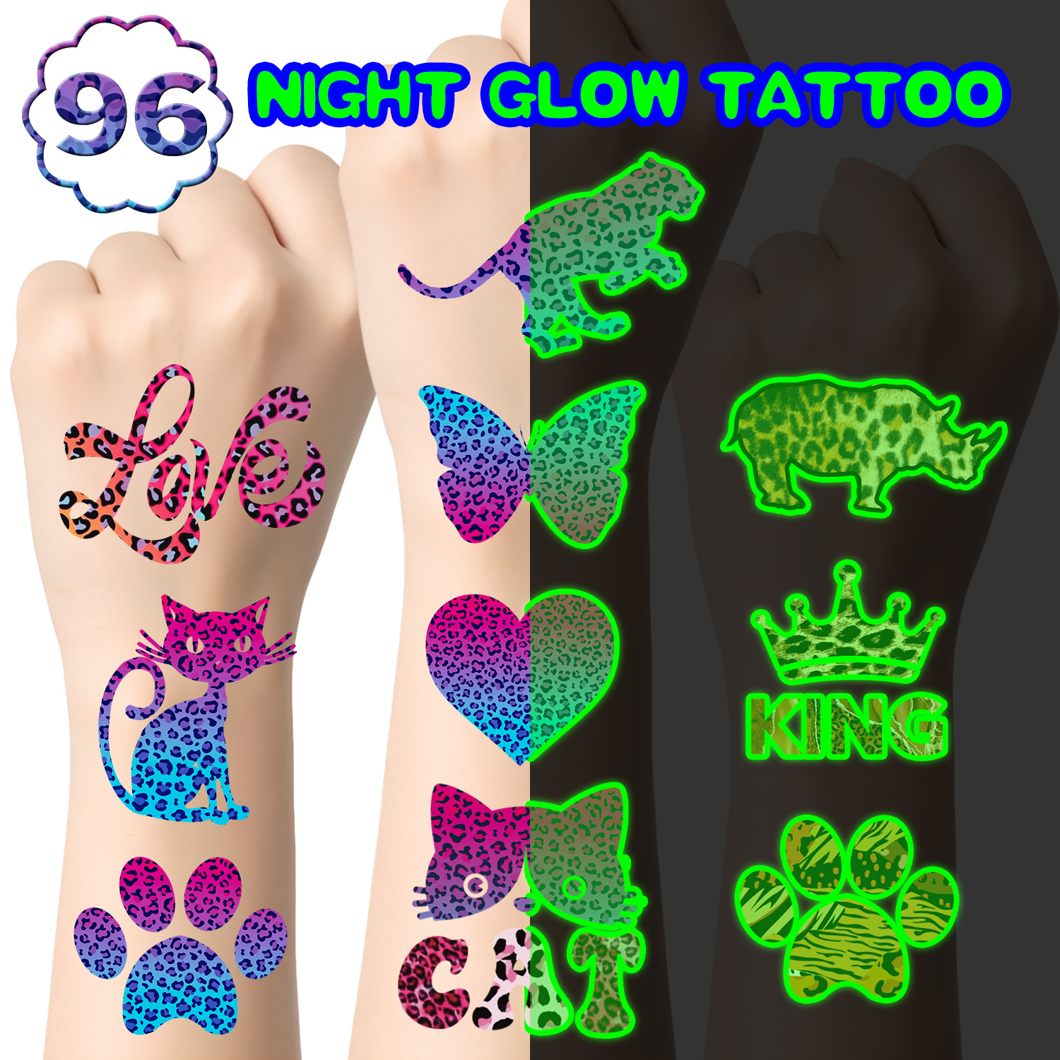 亚马逊新款96件绿夜光豹纹身贴生日派对脸贴高级感贴纸卡通装饰品