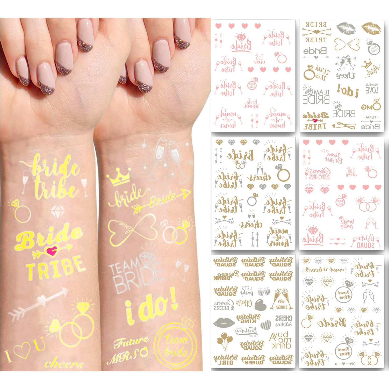 アマゾン結婚式Brideバラ金アルファベット箔押しタトゥーステッカー花嫁独身パーティーステッカー