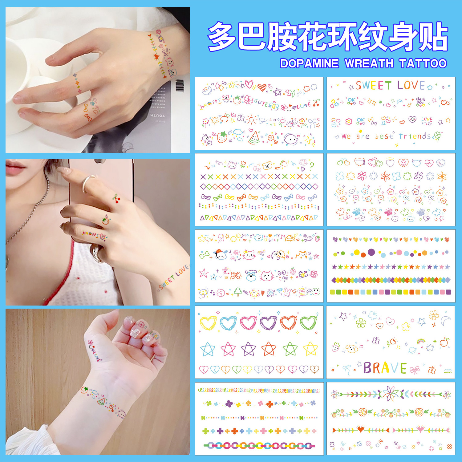 越境新品夏小清新愛花カラー指紋身付ドーパミン花輪刺青シール