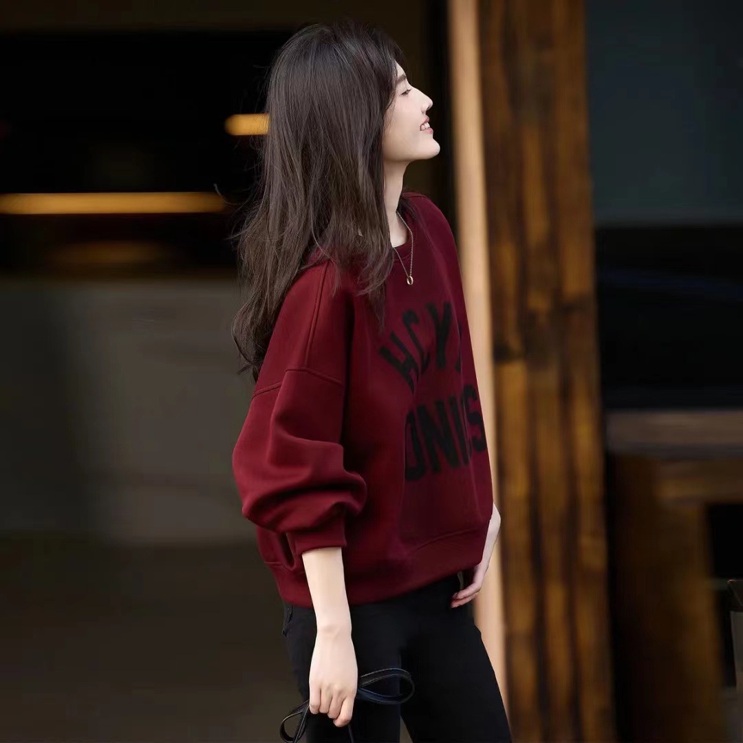圆领减龄字母印花套头上衣25秋冬新款时尚气质百搭休闲卫衣