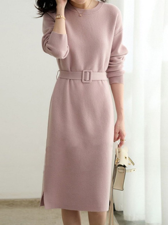 コートのセーターのスカートのベルトの2023秋冬の優雅な洋風の中の長いタイプの中で底のニットのワンピースを掛けます。