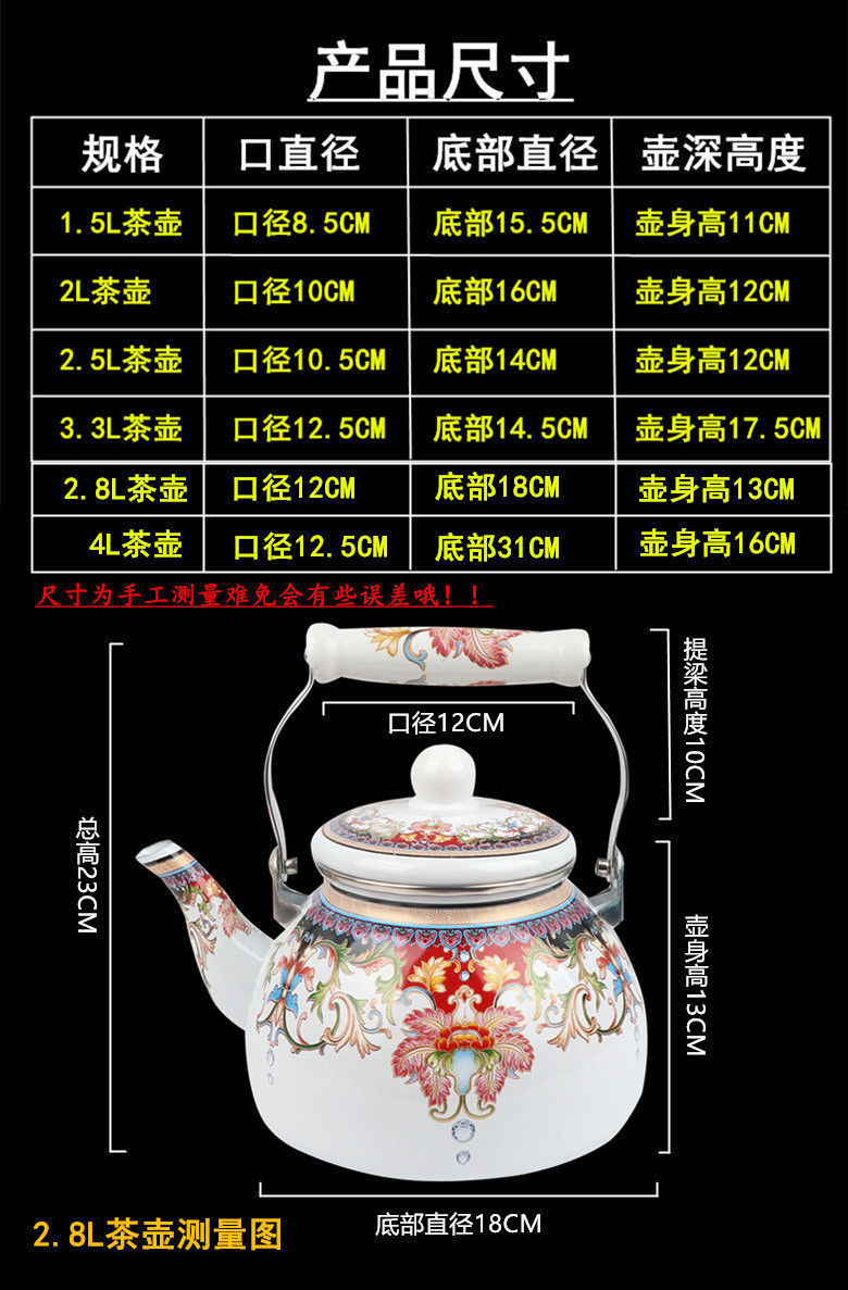 珐琅搪瓷壶搪瓷茶壶搪瓷提手壶烧水壶电磁炉壶燃气壶开水壶厂货源