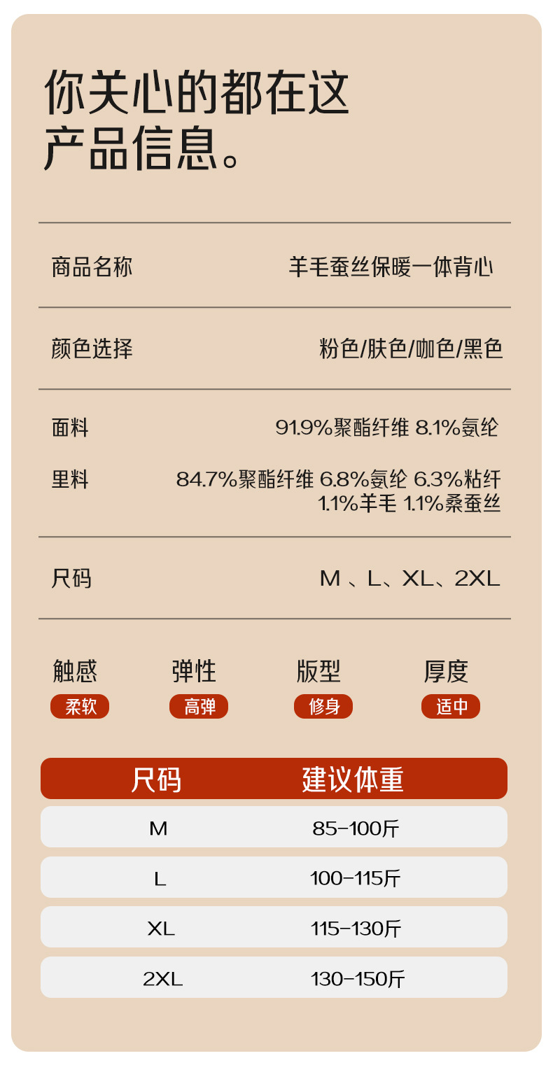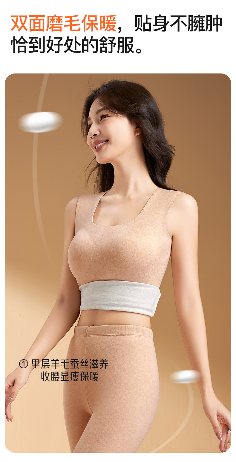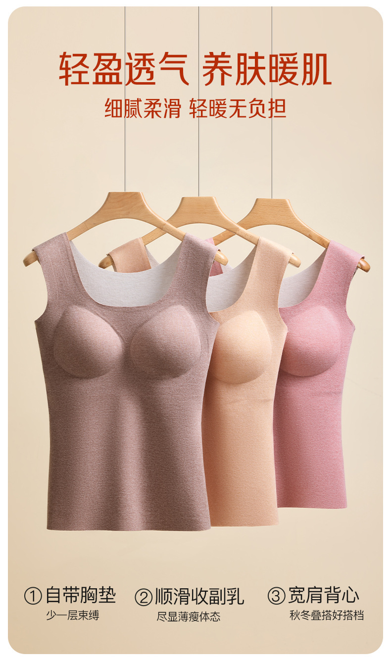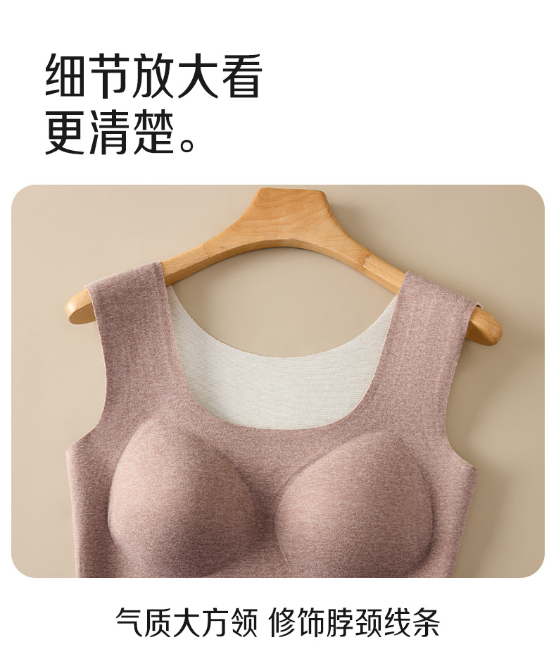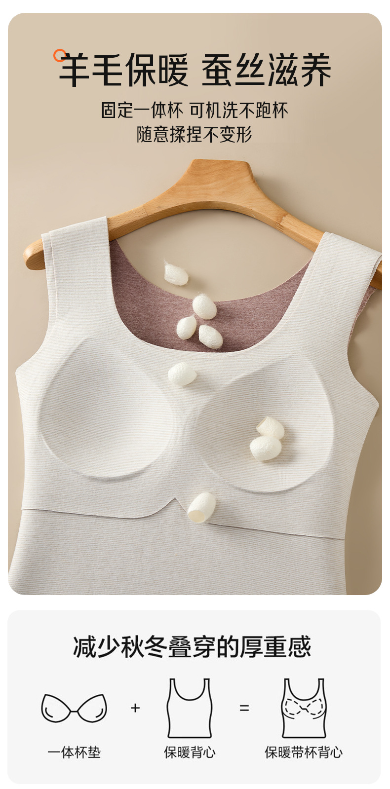 蚕丝羊绒保暖背心加绒加厚发热德绒修身无痕打底固定胸垫冬季内衣