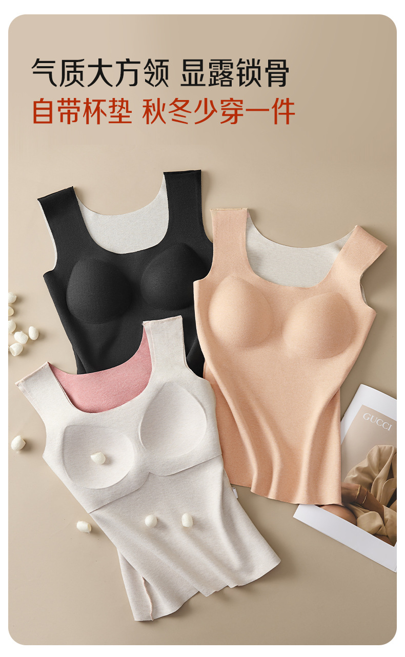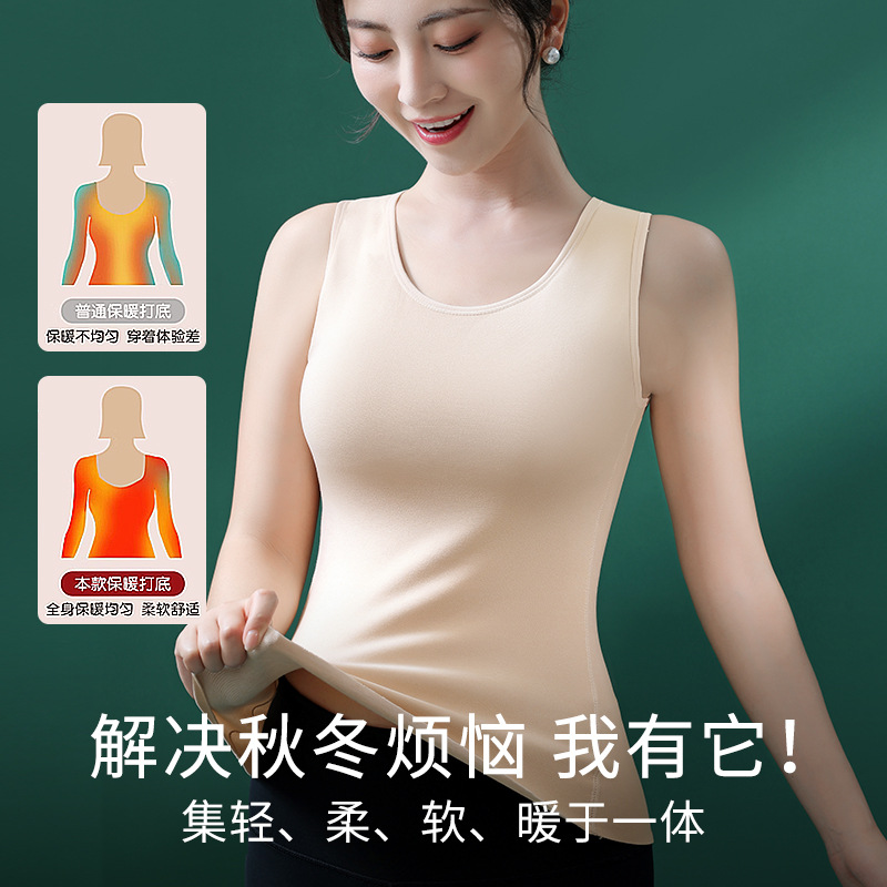2025秋冬新款保暖背心女带胸垫双面磨毛无痕马甲背心贴身打底内衣