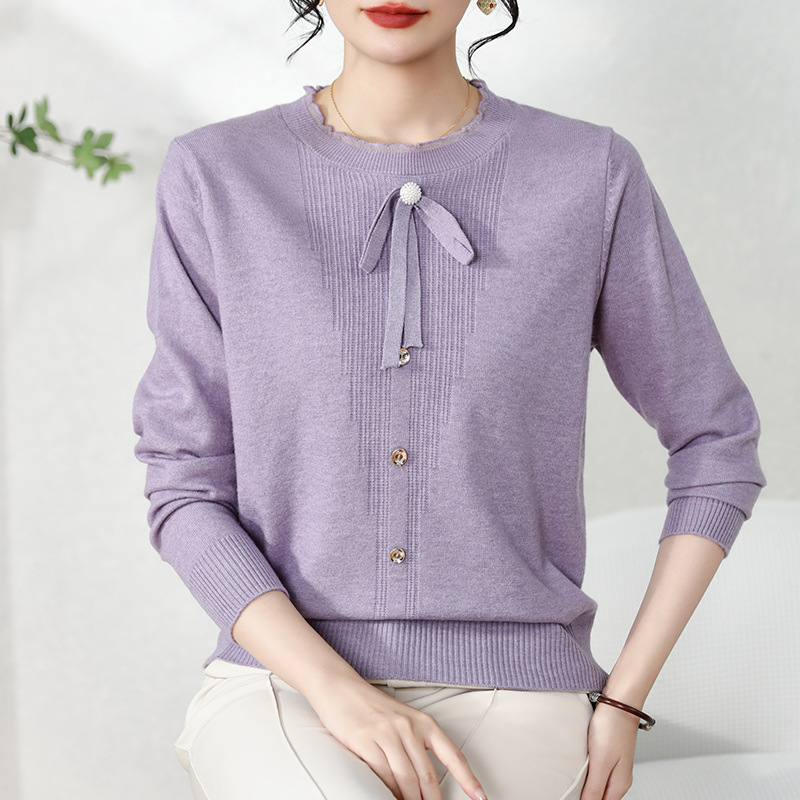 源头工厂春秋妈妈装圆领针织衫中老年女装纯色套头妈妈打底衫毛衣