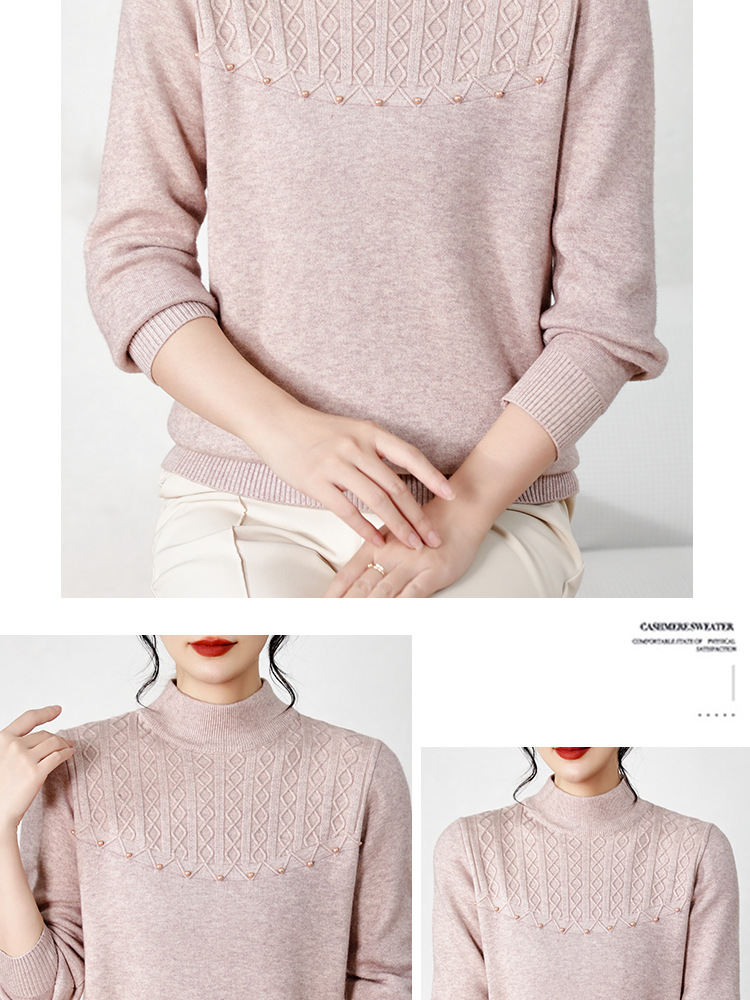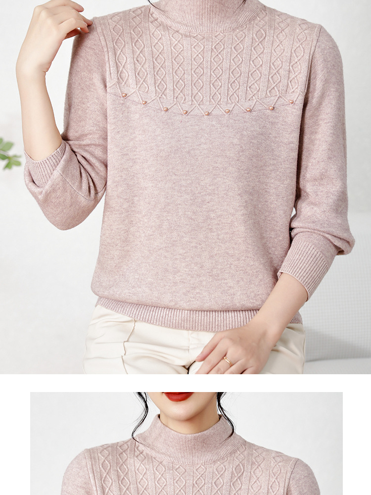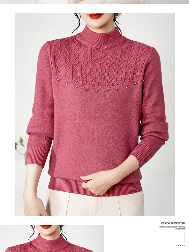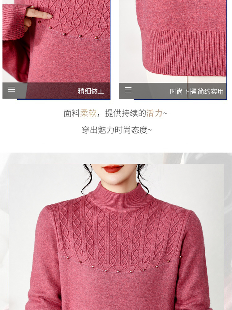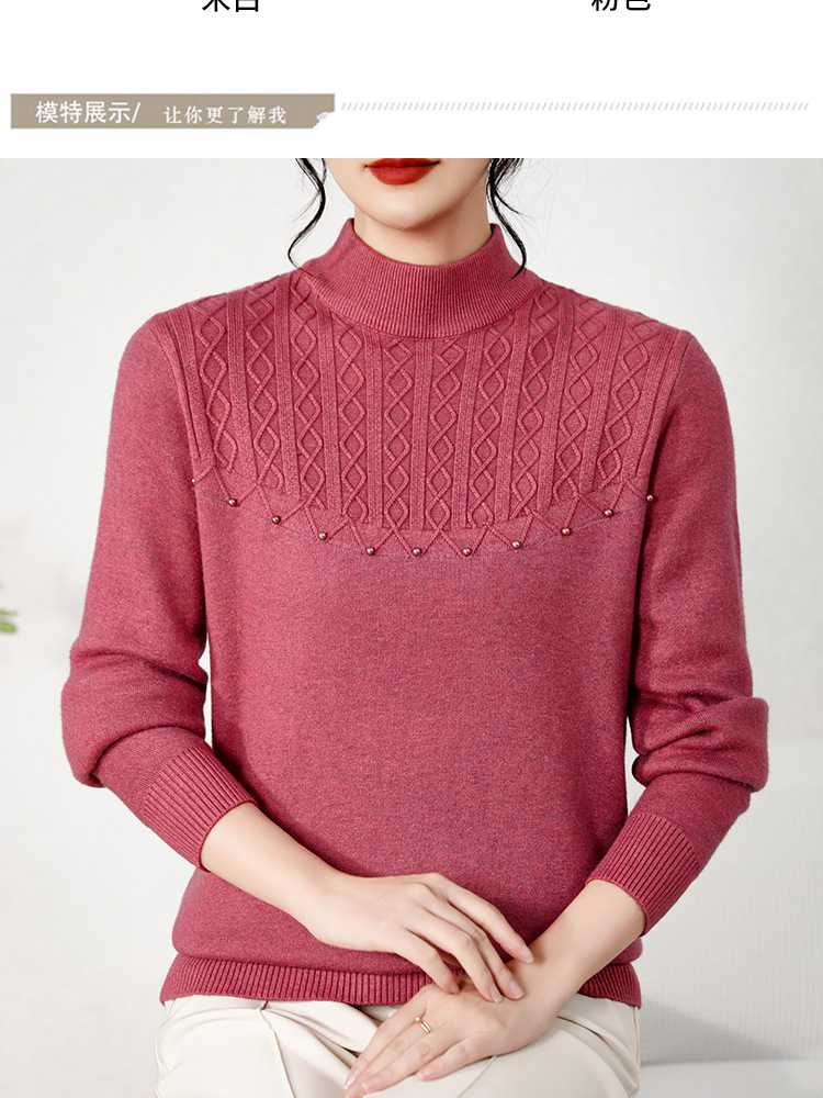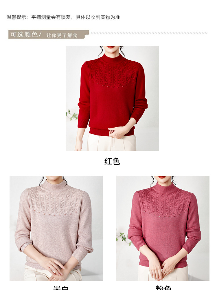 源头工厂中老年针织衫上衣半高领绣花妈妈装纯色打底衫奶奶装女装