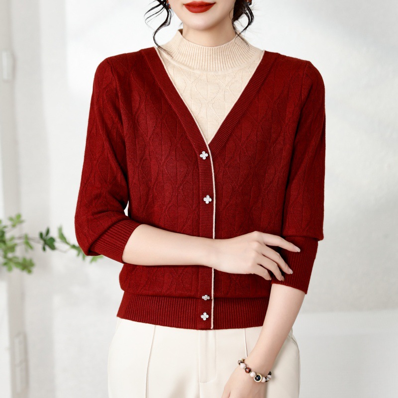 源工場製 母親向け春秋ニットトップス おばあちゃんセーター 女性用コート 中高年女性用長袖カーディガン