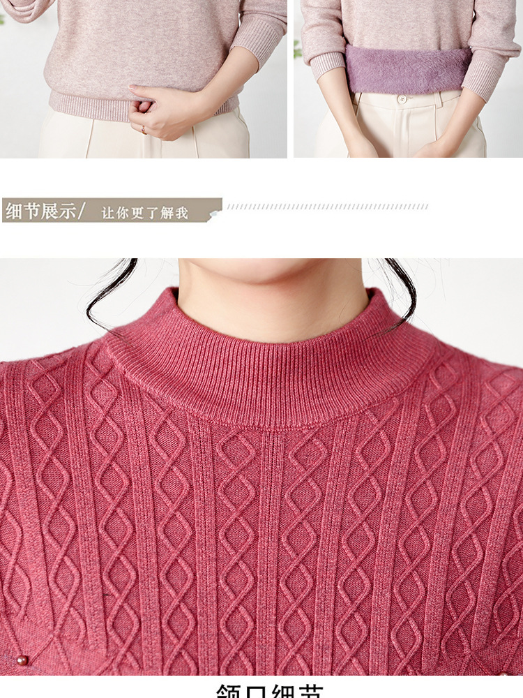 源头工厂中老年奶奶装加绒衣服套头纯色冬季针织衫毛衣妈妈打底衫