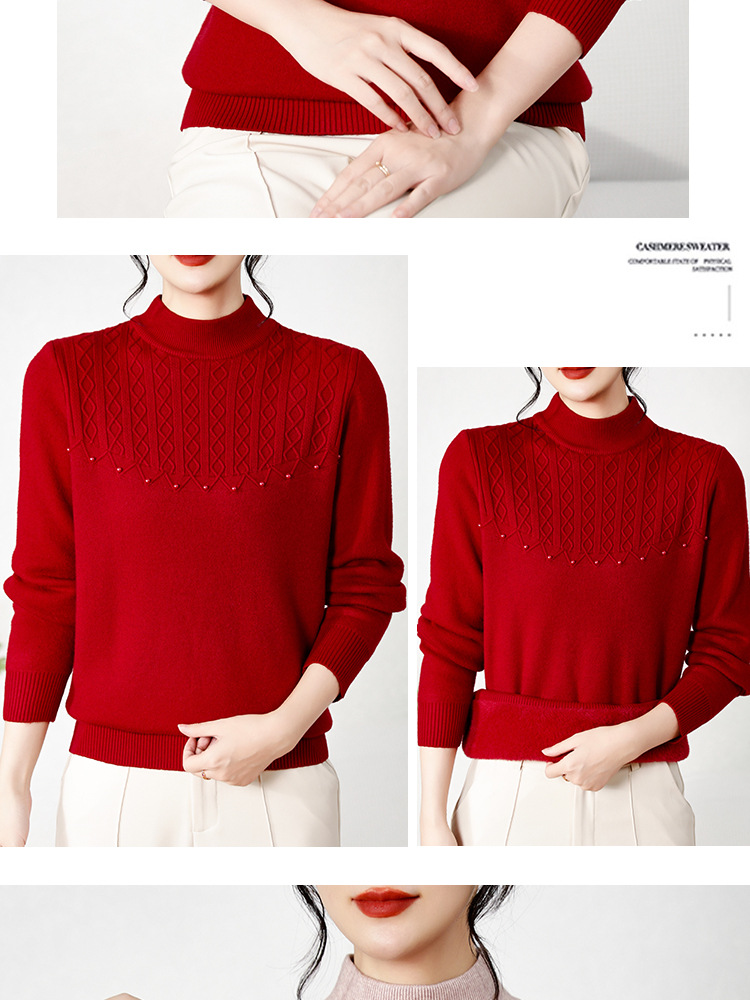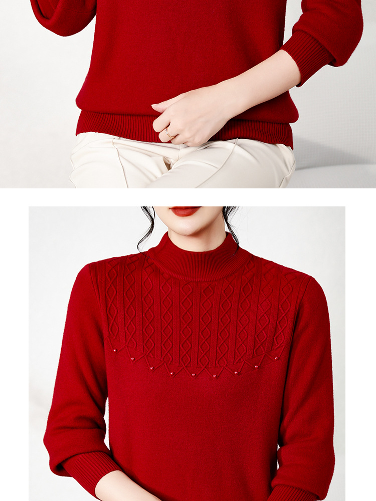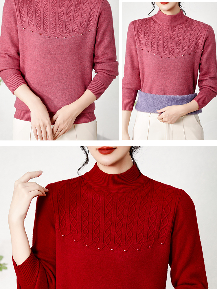 源工場 中高年向け 秋冬服 ハーフタートルネックセーター おばあちゃんニット ママ服 カジュアルプルオーバー ストレッチシャツ
