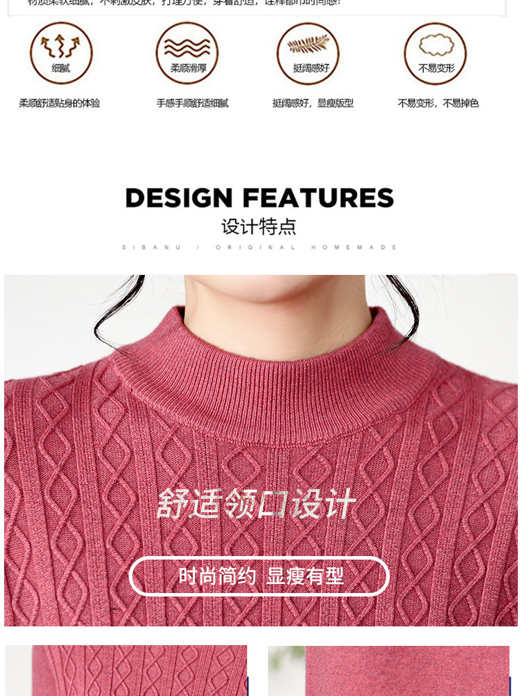 源头工厂中年纯色百搭新款柔软洋气妈妈打底套头衫秋冬亲肤奶奶装