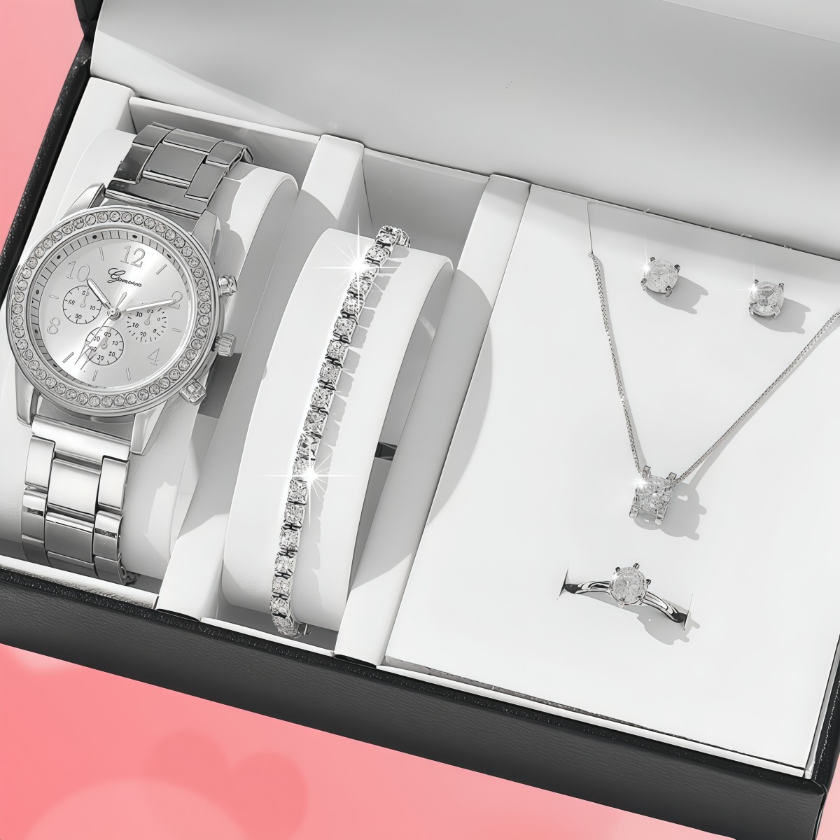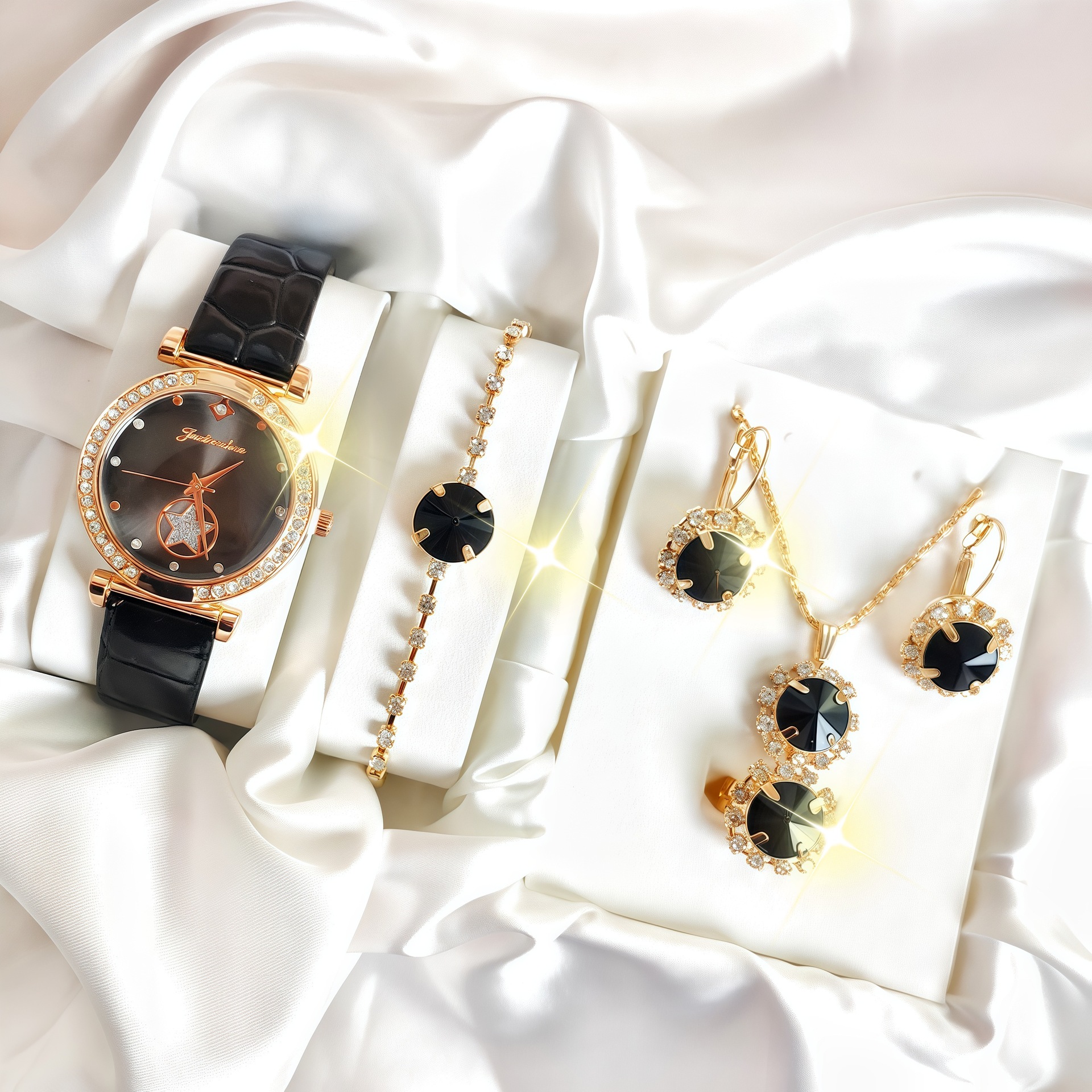 スクエア型レディース宝石セット腕時計 女性用 YBOTTI越境貿易人気商品 5個セットクォーツ時計セットギフトボックス