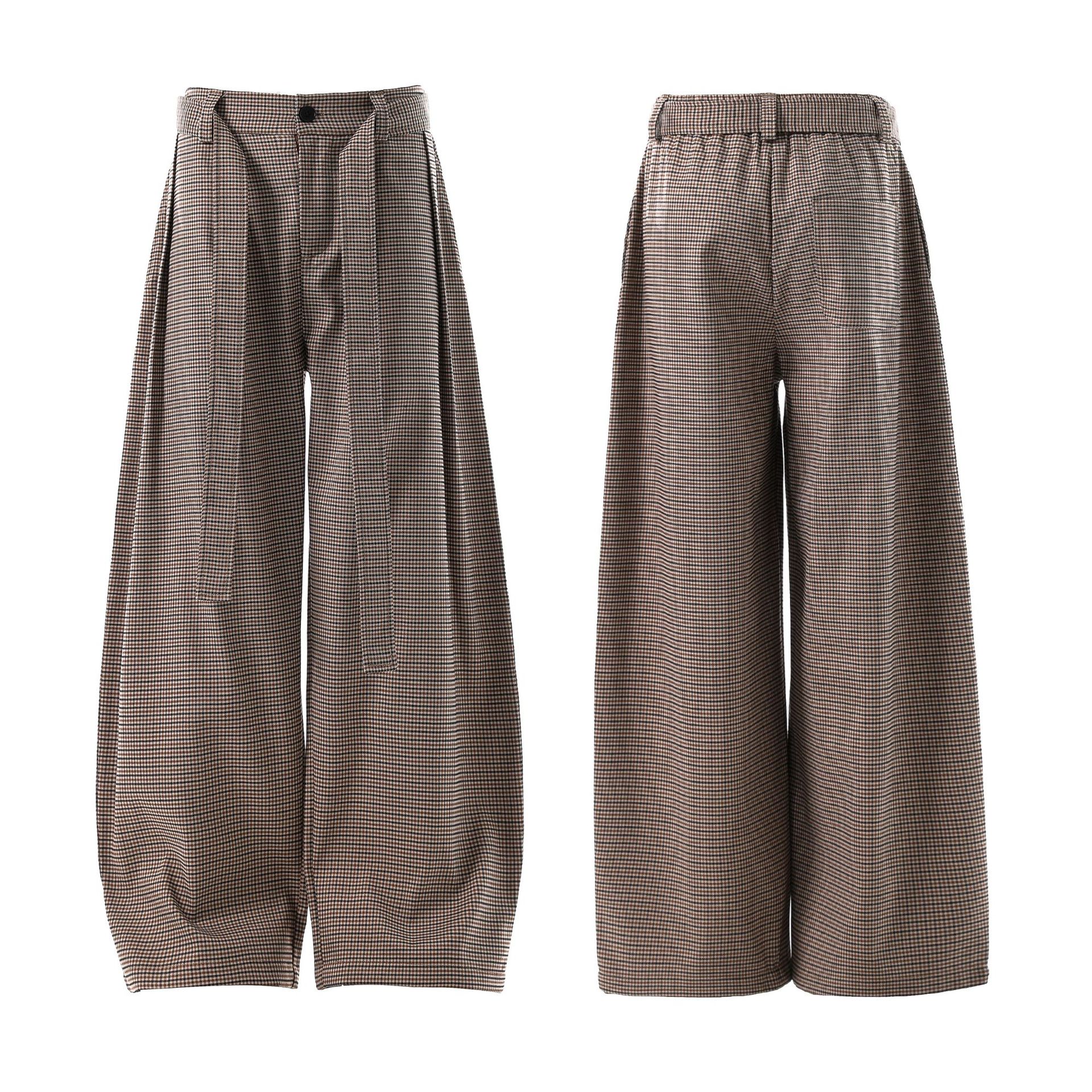 アメリカンレトロ千鳥格子パンツ、男女兼用、トレンドブランドバイブドレープワイドパンツ、ルーズストレートカジュアルロングパンツ