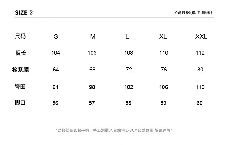 裤尺寸 S,M,L,XL,2XL