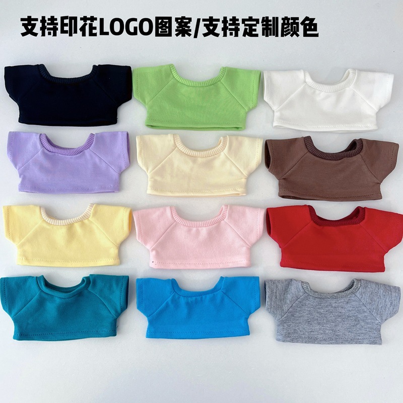卸売ベビー服 10 センチメートル 15 センチメートル 20 センチメートル綿人形 Tシャツ半袖 Labubu ベビー服はロゴパターンを追加することができます