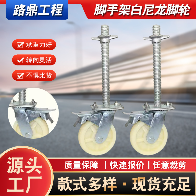 脚手架轮子加粗加长丝杆6寸8寸万向轮带刹车调节轮带丝杆升降脚轮