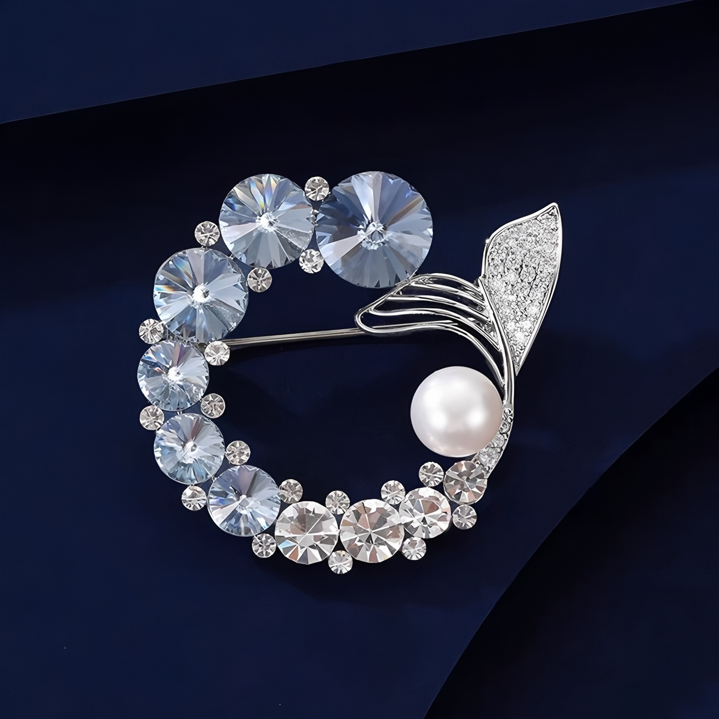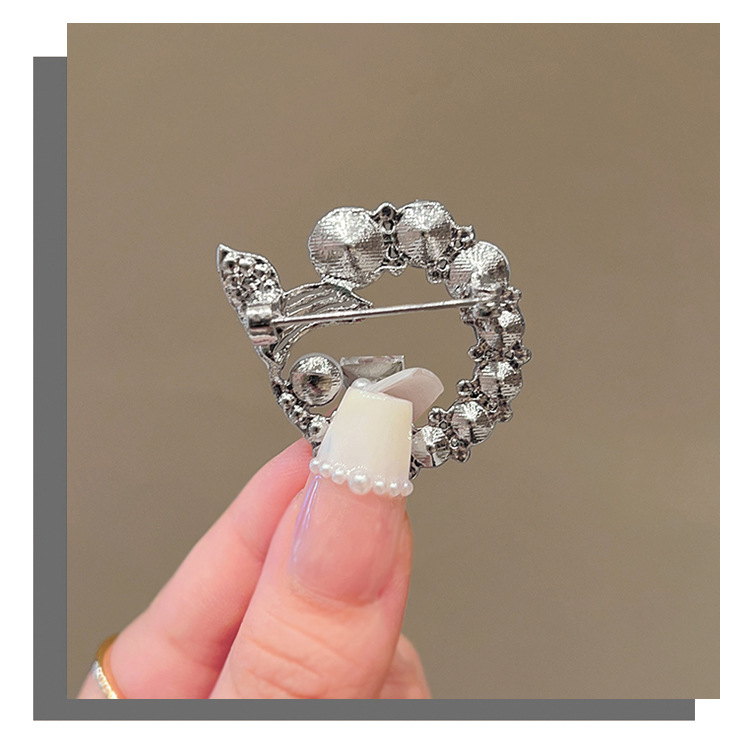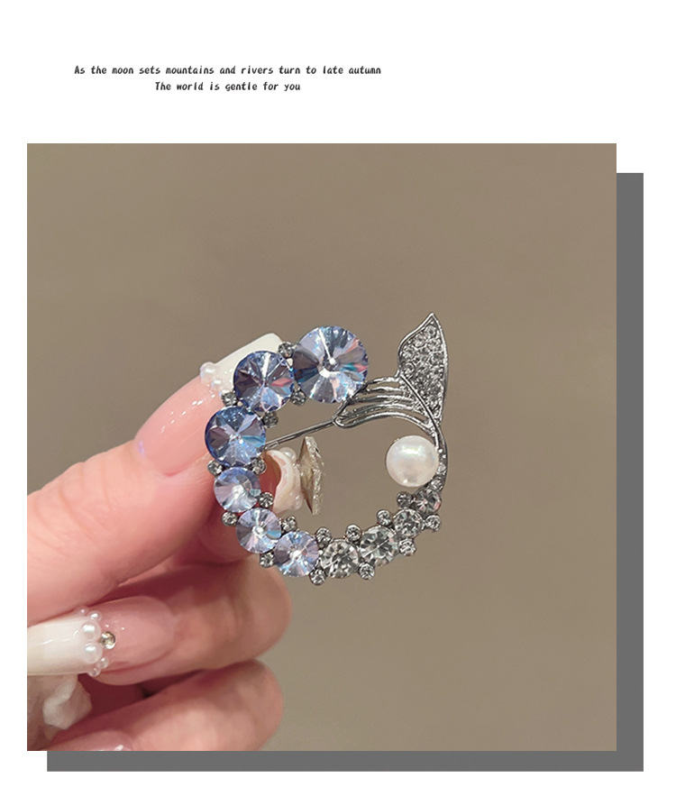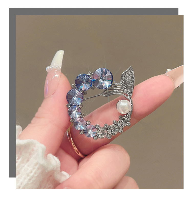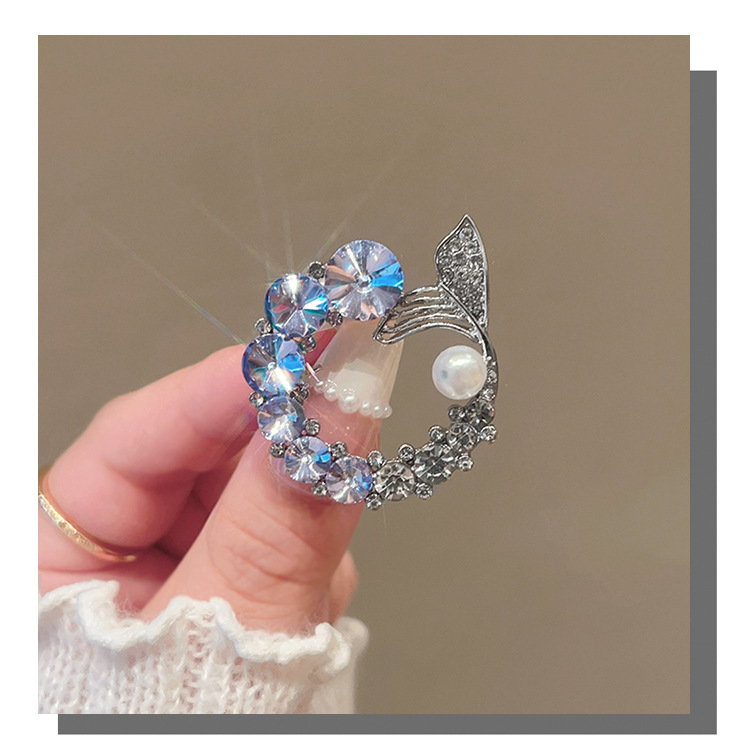 轻奢高级感鱼尾胸针高档设计感仿水晶胸花时尚精致仿珍珠别针配饰