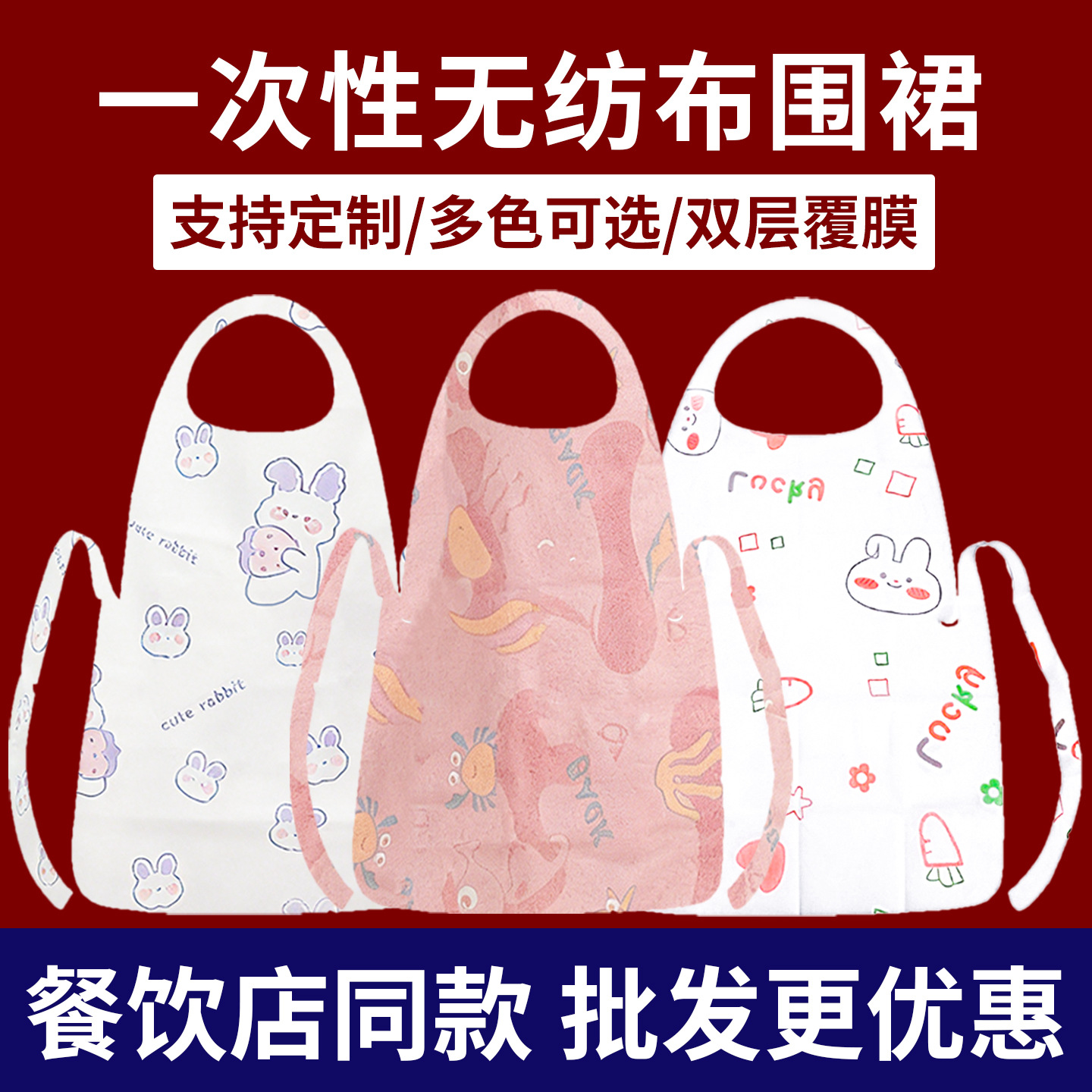 一次性围裙火锅店吃小龙虾餐饮客人成人专用兜无纺布定制logo印字