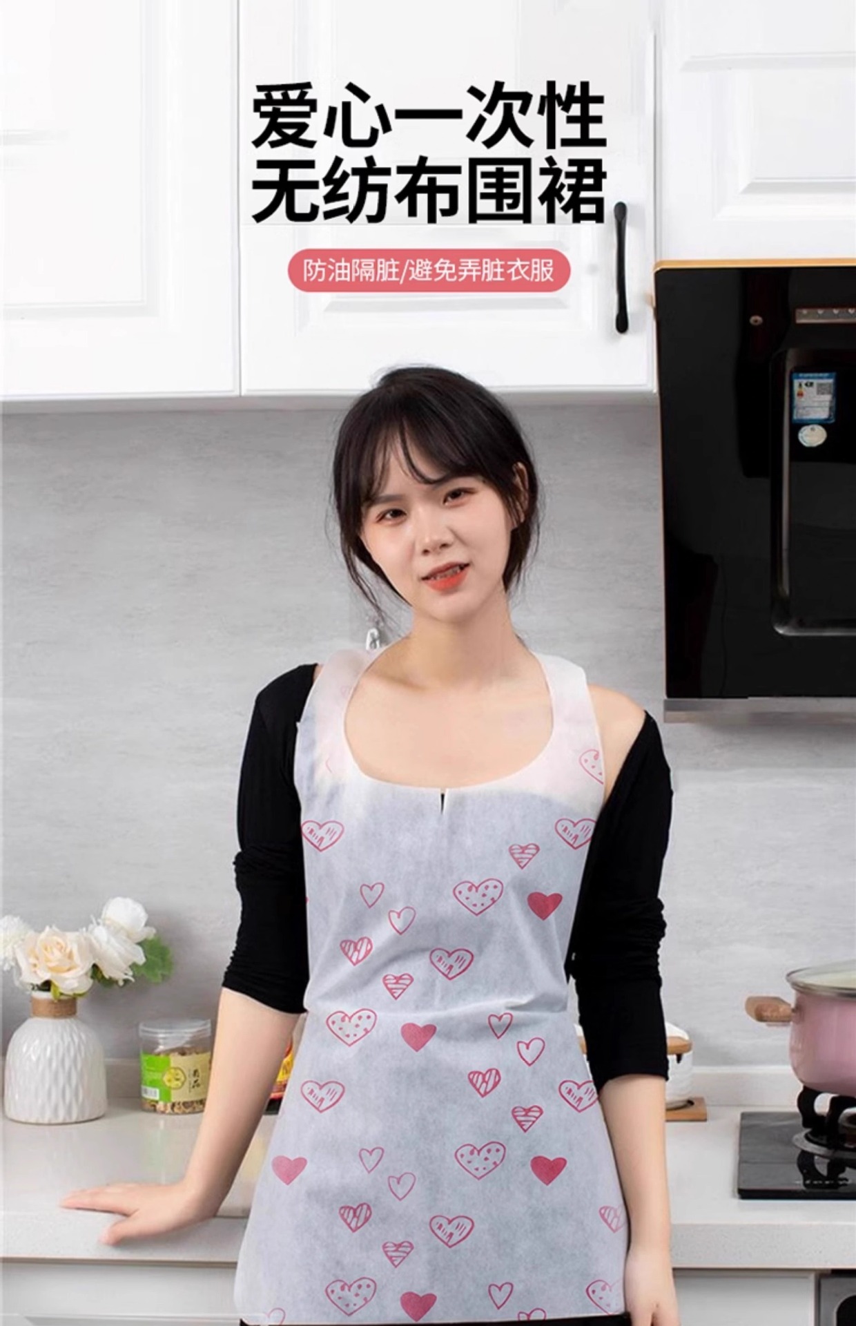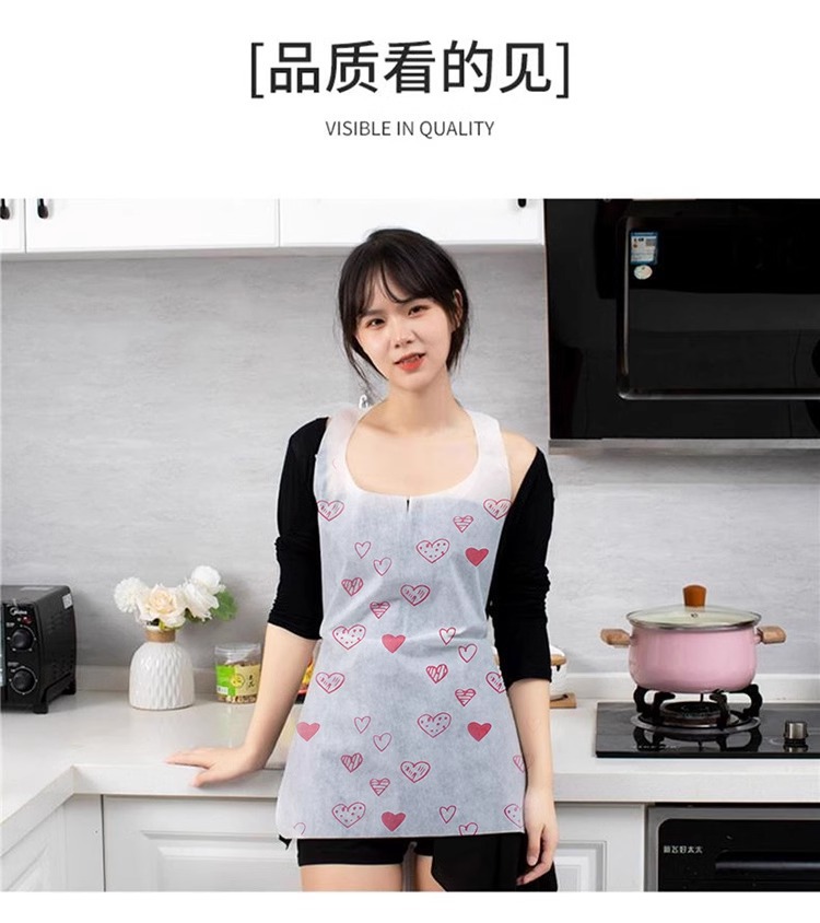 使い捨てエプロン不織布家庭用愛通気性プリント家庭食事バーベキューエプロン