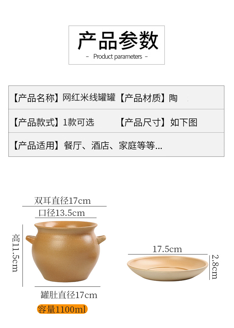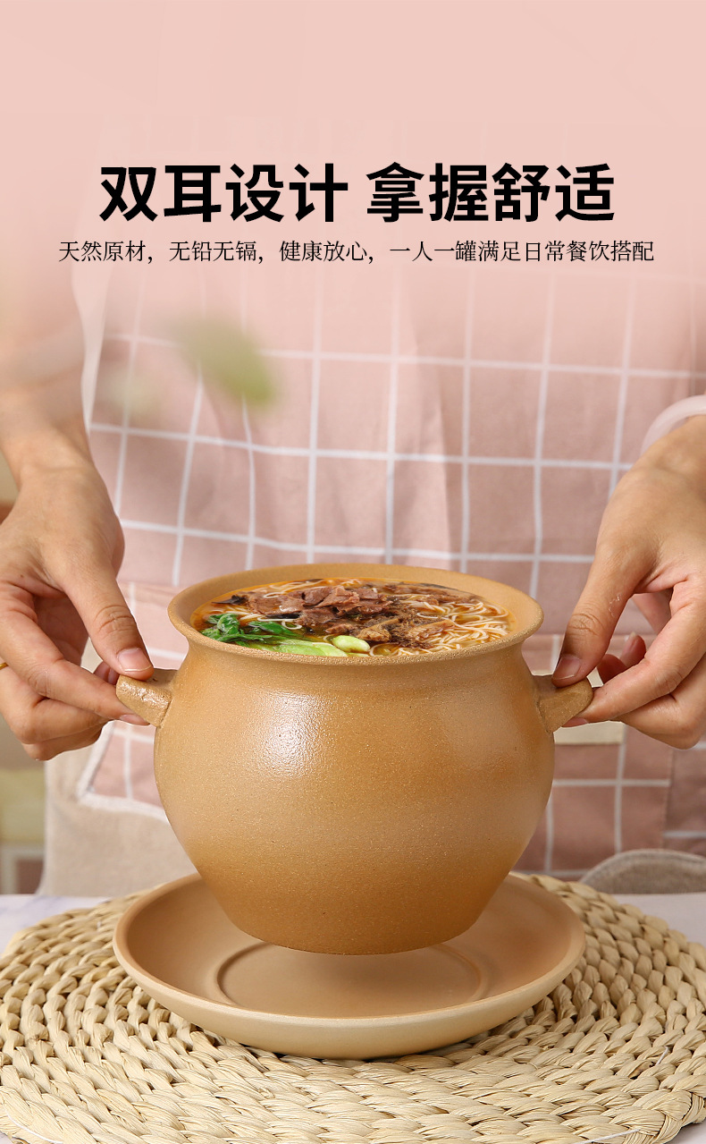 嘉新土陶米线罐罐耐高温可干烧陶瓷炖罐砂锅双耳商用饭店蘸料瓦罐