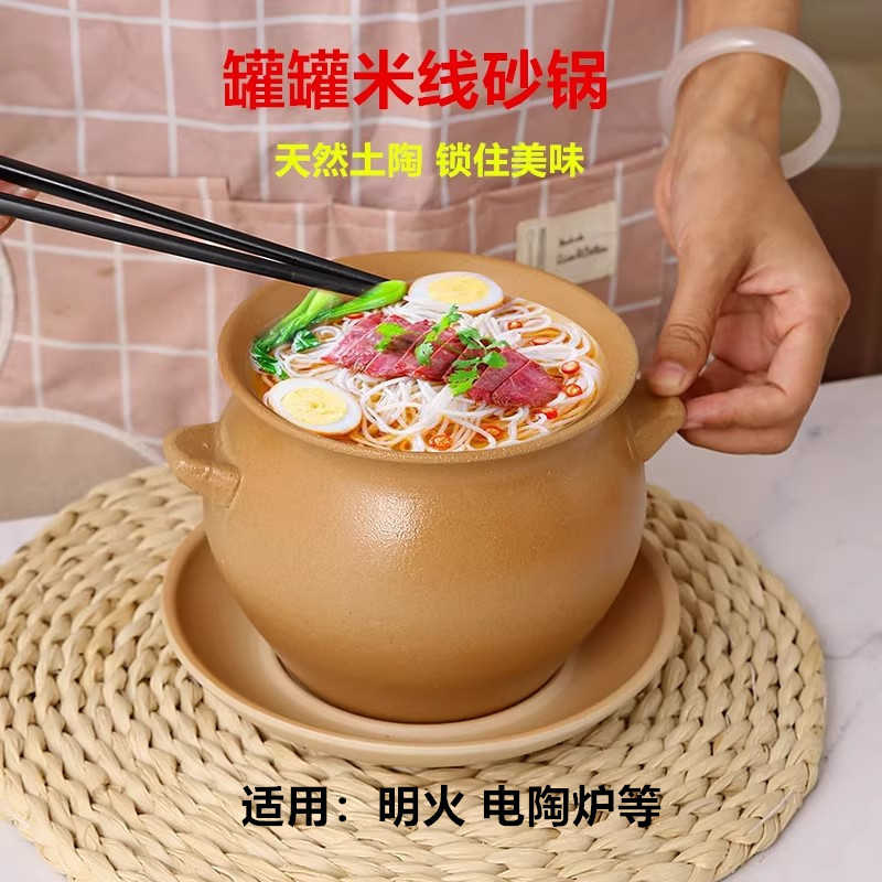 罐罐米线土陶砂锅商用家用耐干烧双耳传统炖罐陶瓷罐网红米线锅