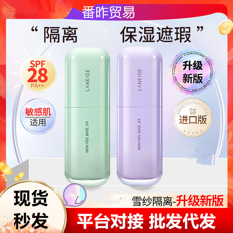 ㊣专柜丨韩国兰之雪纱防晒隔离霜紫色绿色遮瑕妆前乳提亮打底30ml