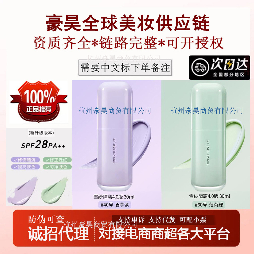 韩国lanzhi蓝芝雪纱丝柔三合一隔离霜30ml紫色绿色打底妆前乳遮瑕