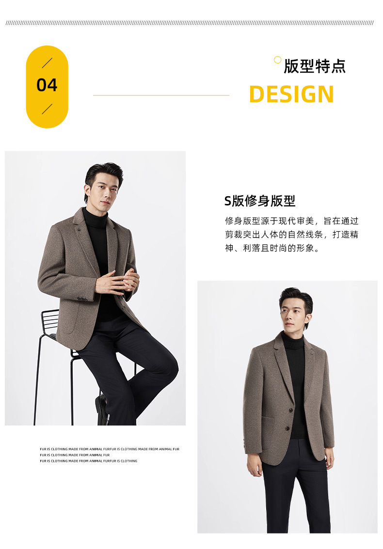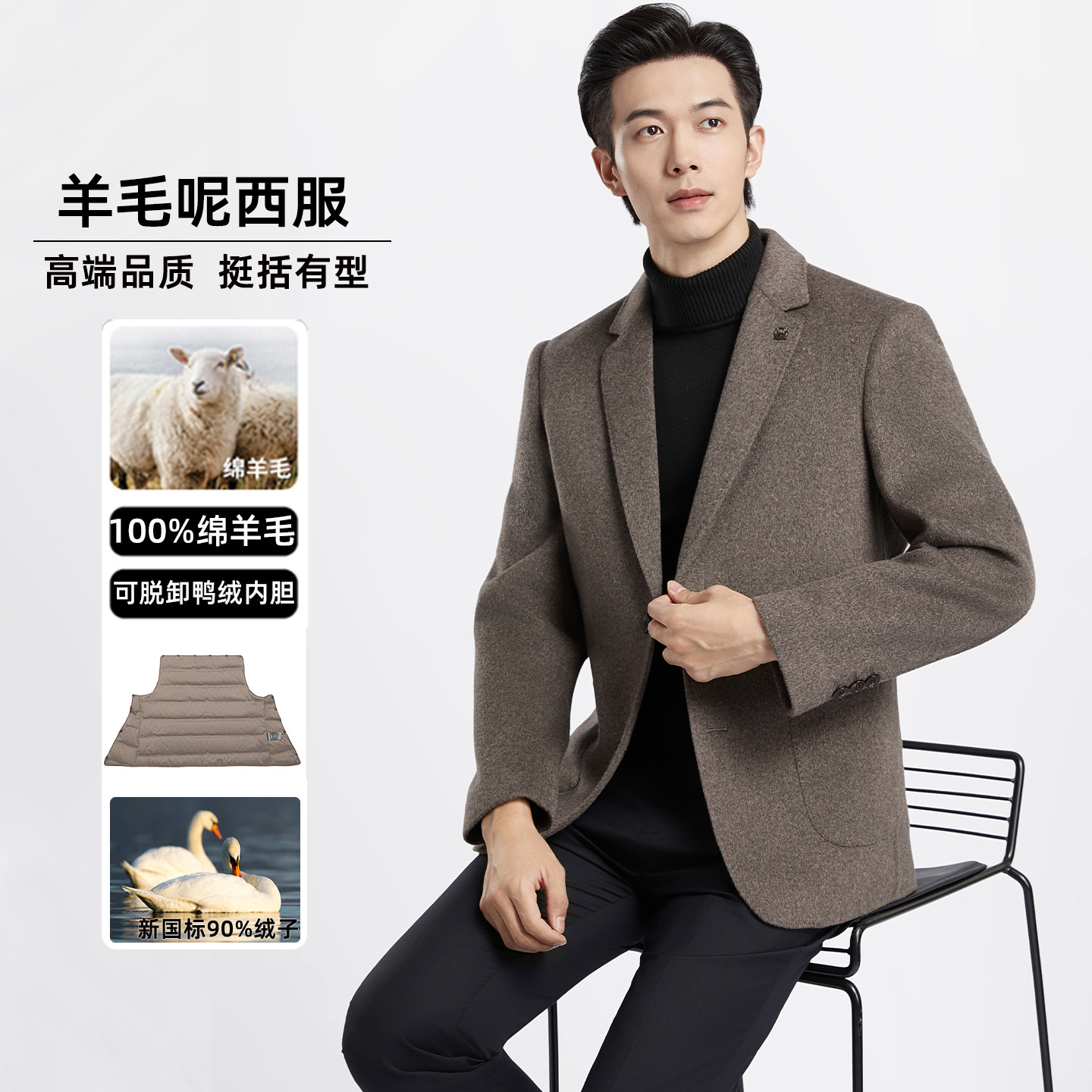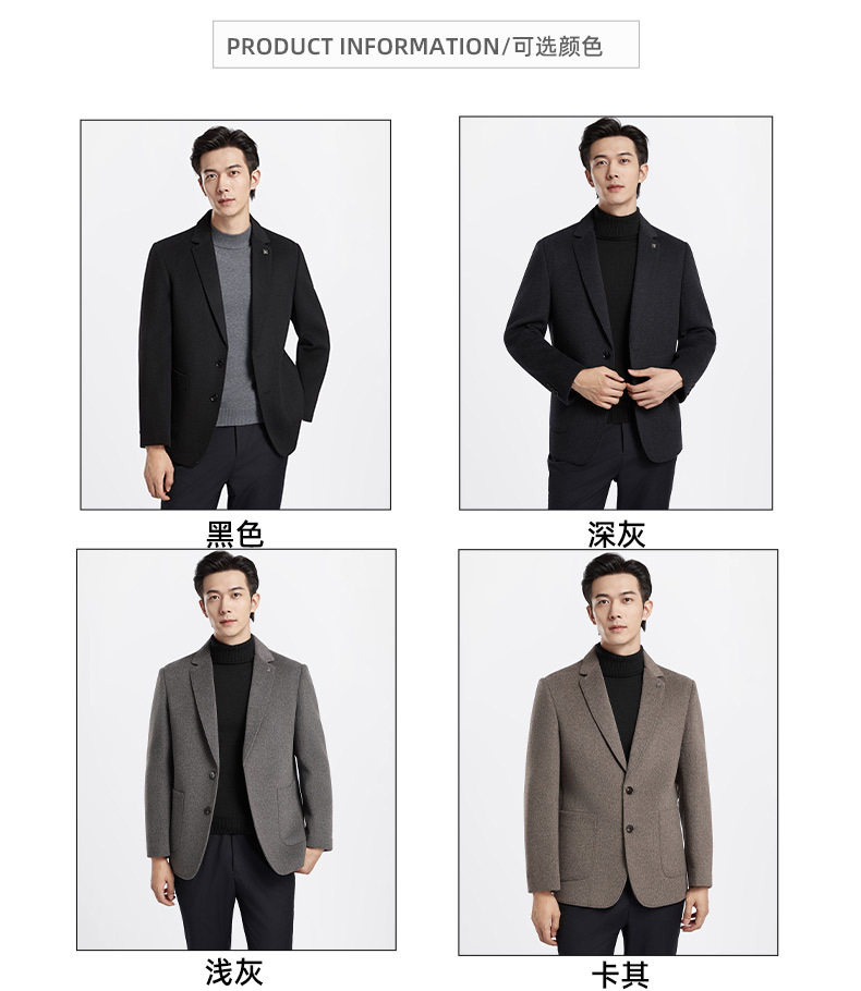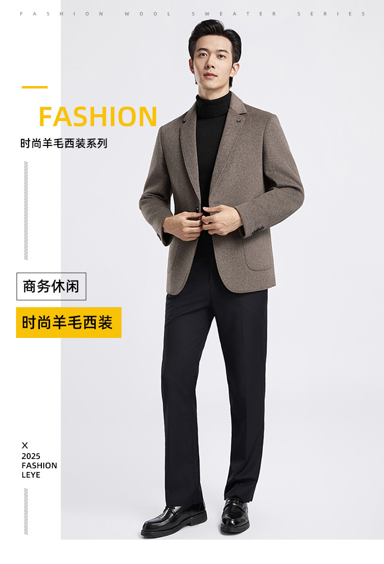 男士商务休闲双面呢子西装外套秋冬季新款羽绒内胆100%纯羊毛西服