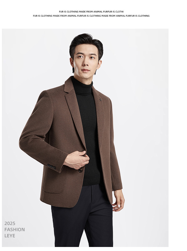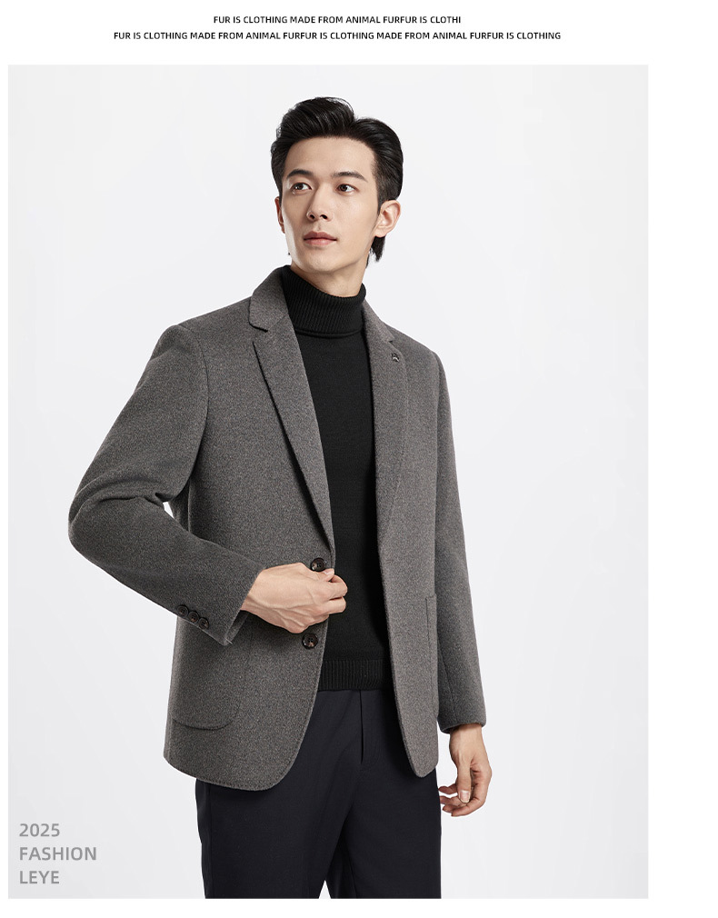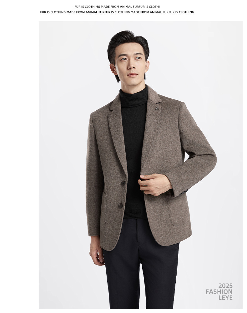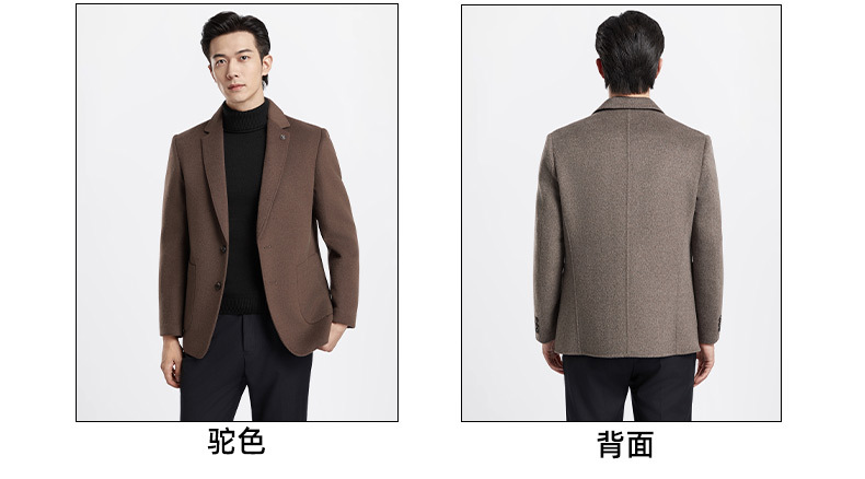 秋冬新款双面羊绒西装男中年爸爸装毛呢外套高端羊毛商务休闲西服