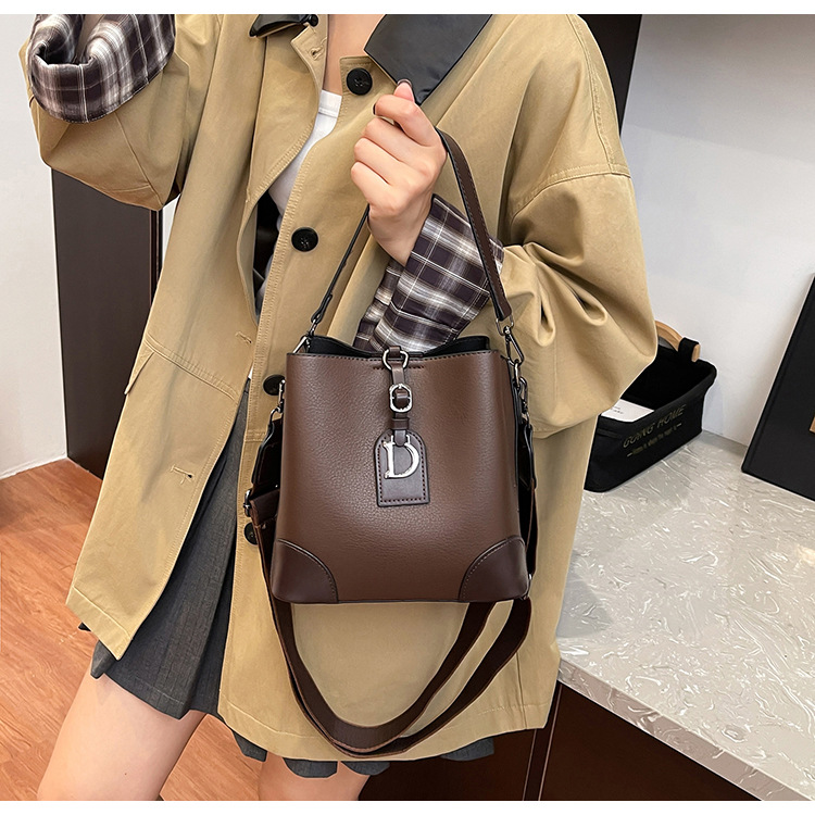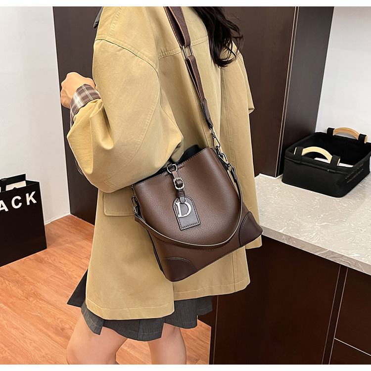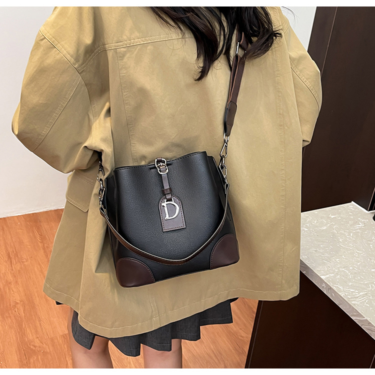 新款水桶包女高级感大容量中年妈妈包欧美新款复古时尚单肩斜挎包
