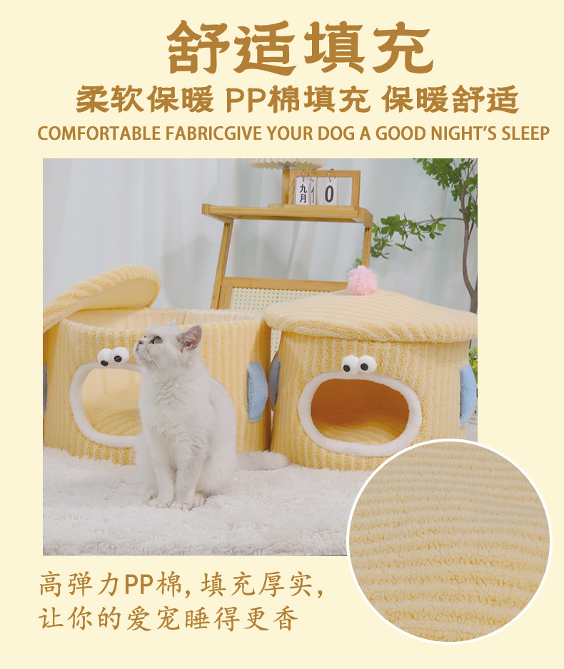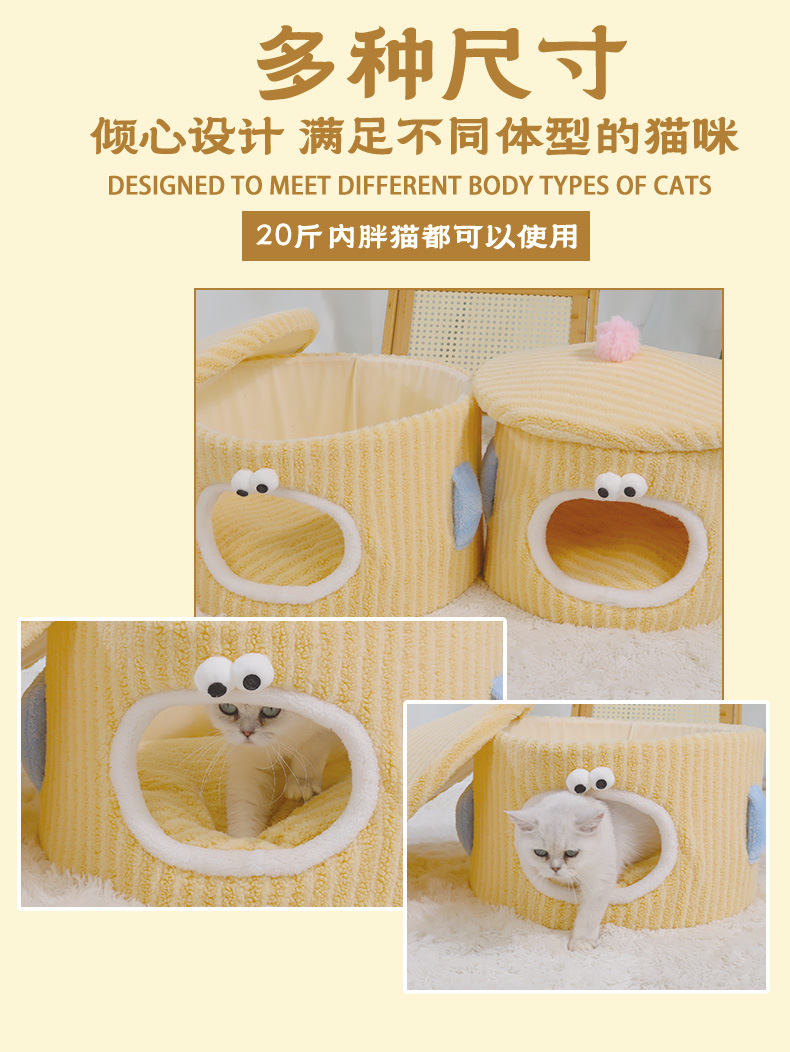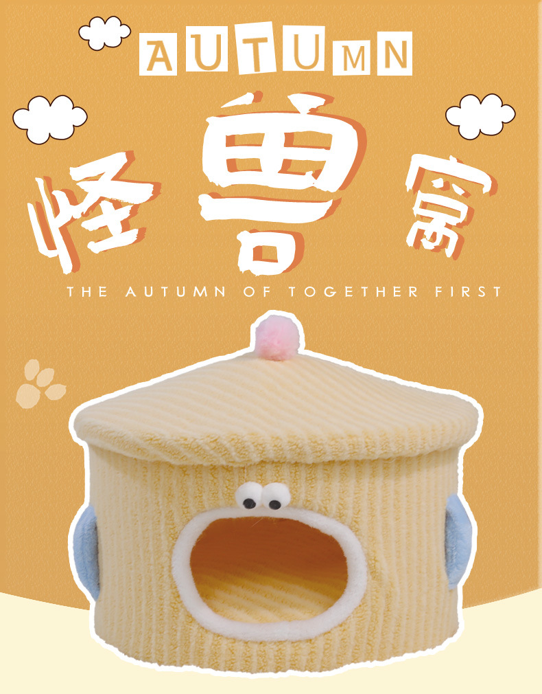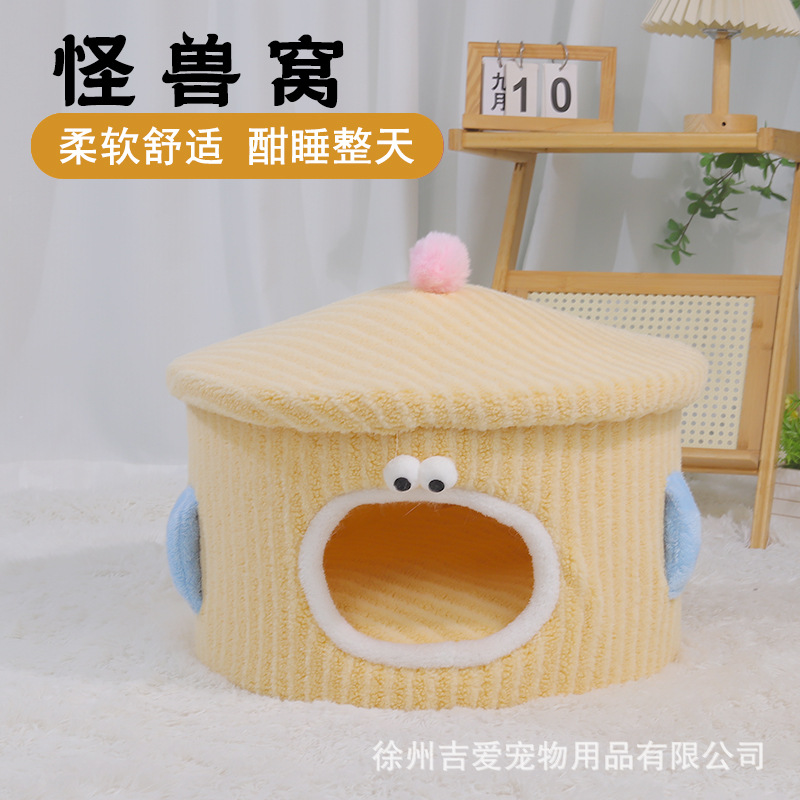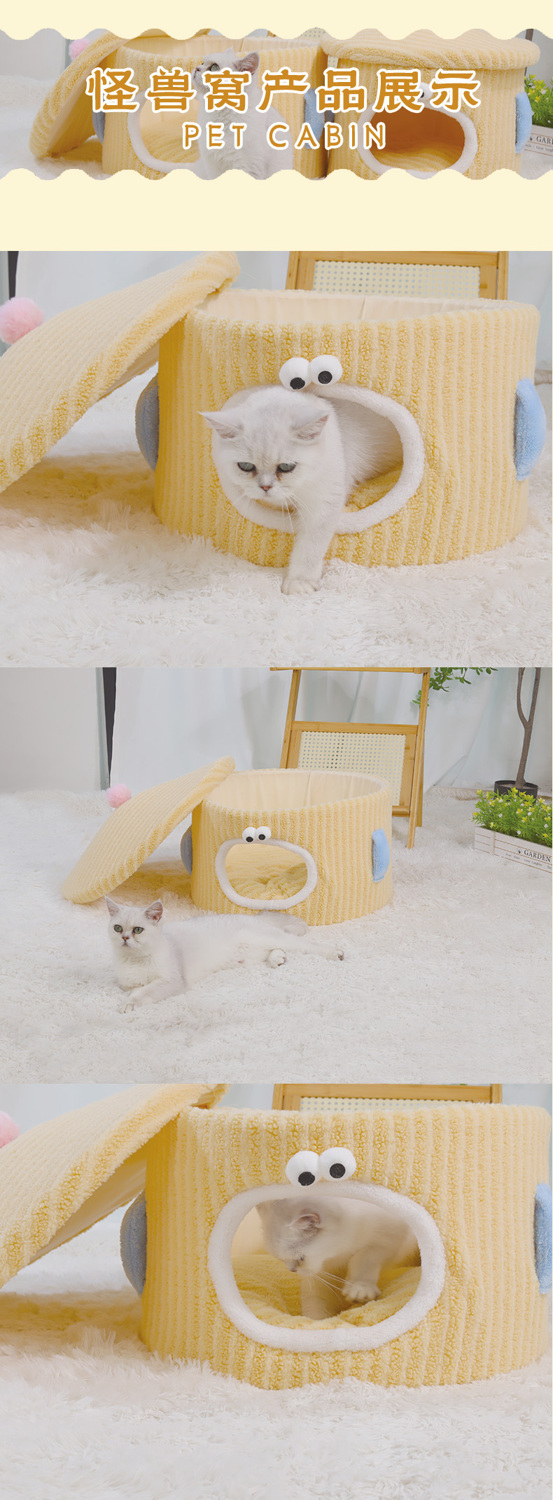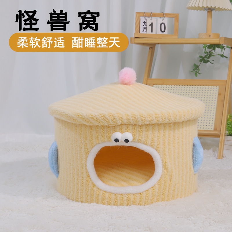 冬季保暖圆柱怪兽猫窝可爱舒适宠物窝可拆洗四季通用猫咪窝沙发窝