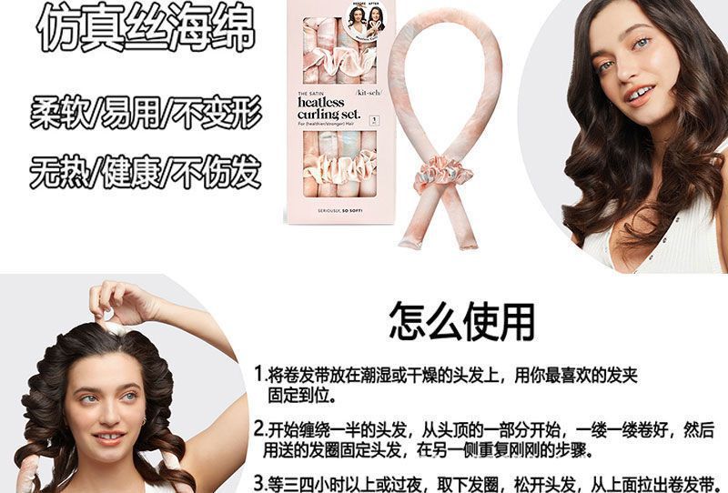 卷发器缎面无热卷发棒套装睡眠美发懒人扎染色卷曲跨境厂家直供